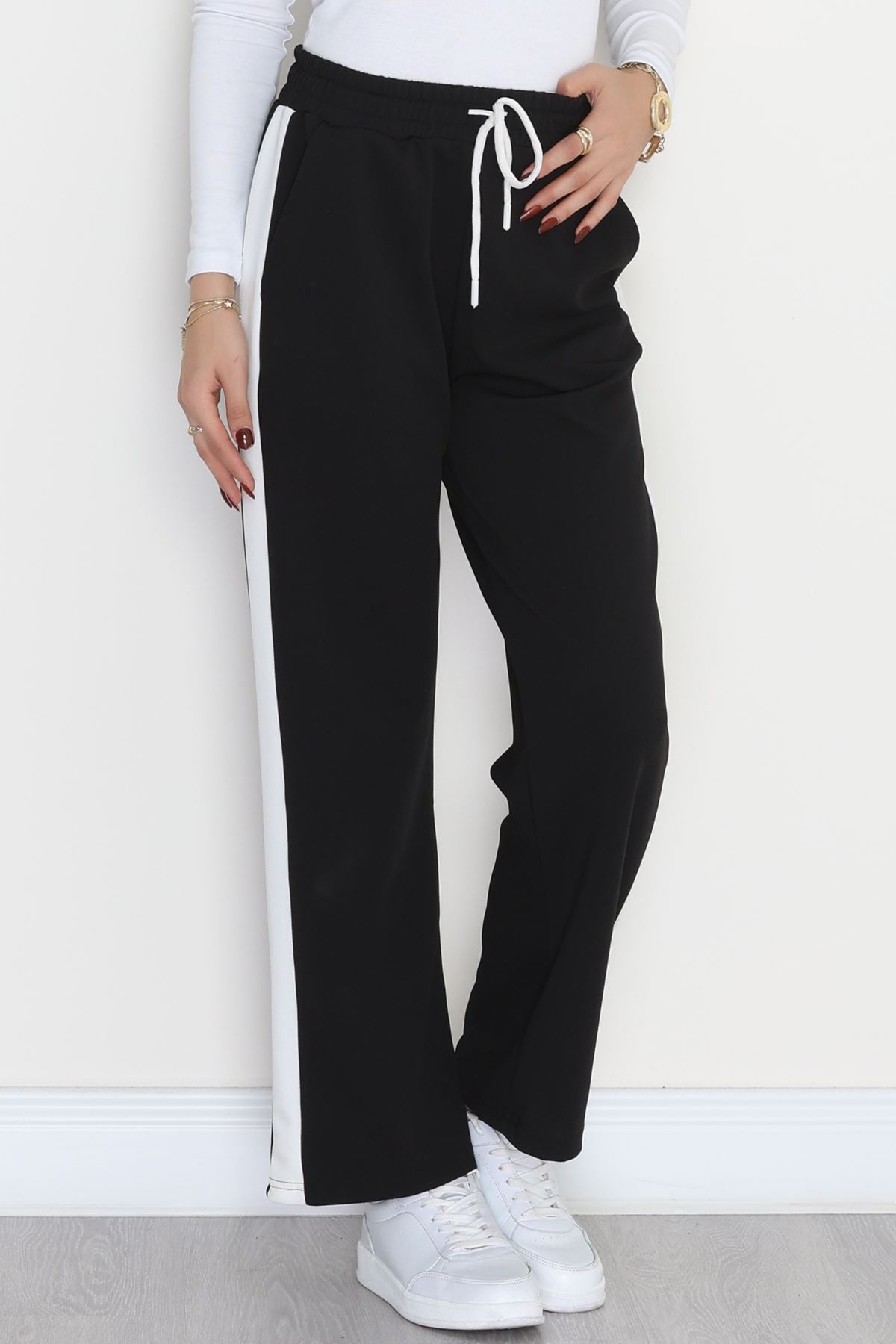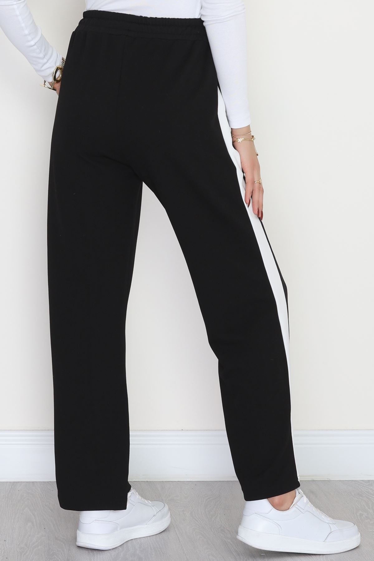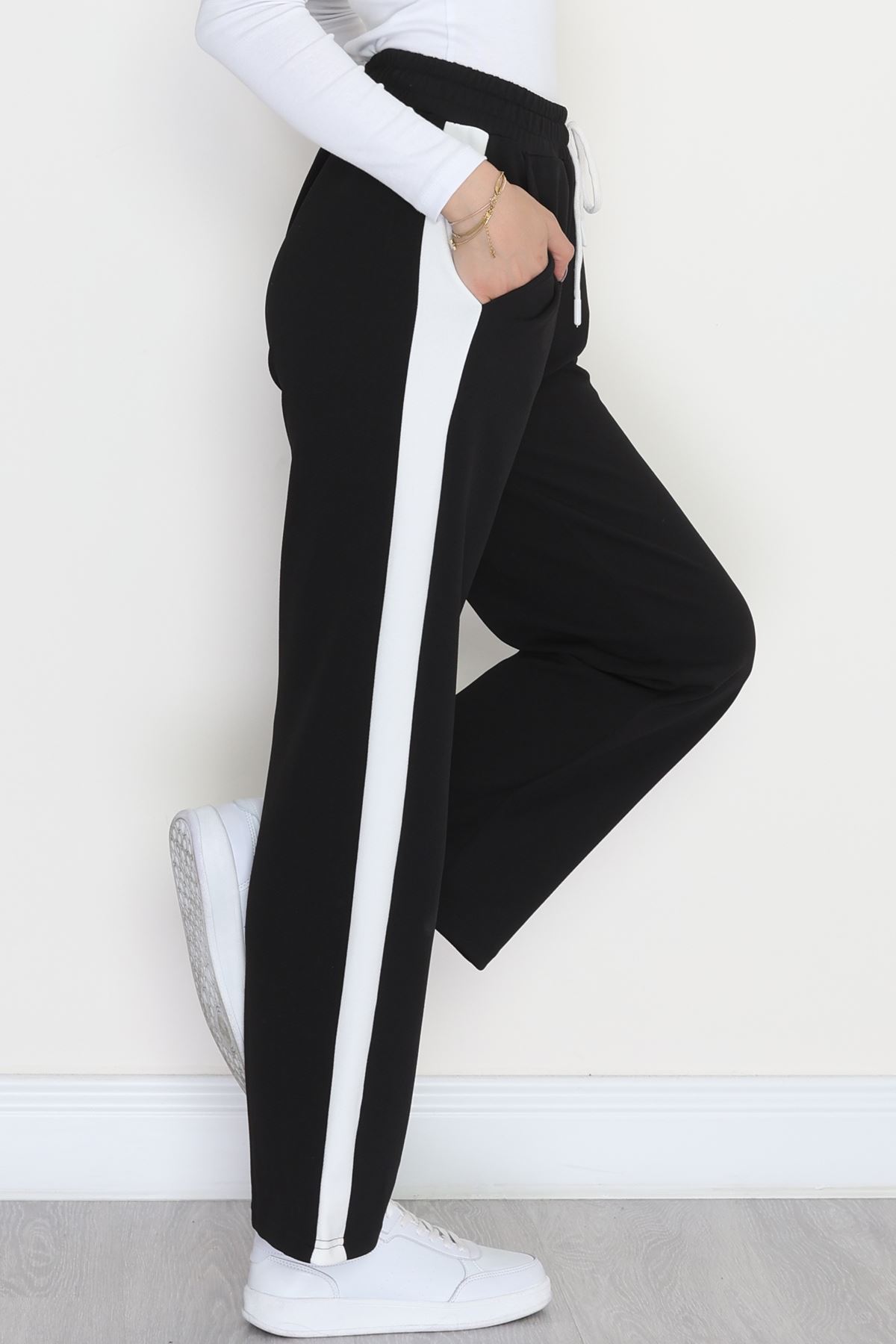 Şerit Detaylı Zra Krep Lastikli Pantolon Siyahbeyaz - 31441.1837.