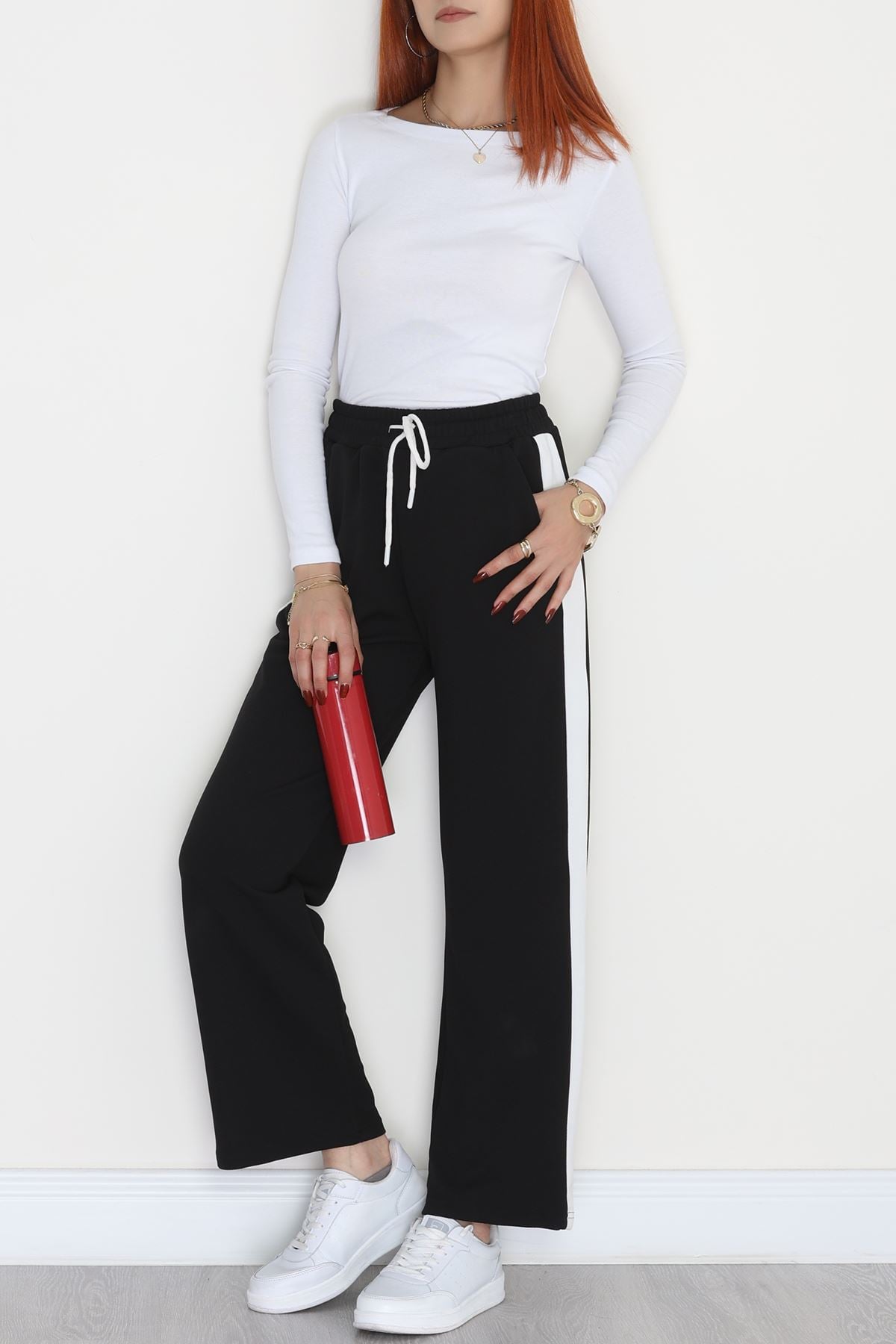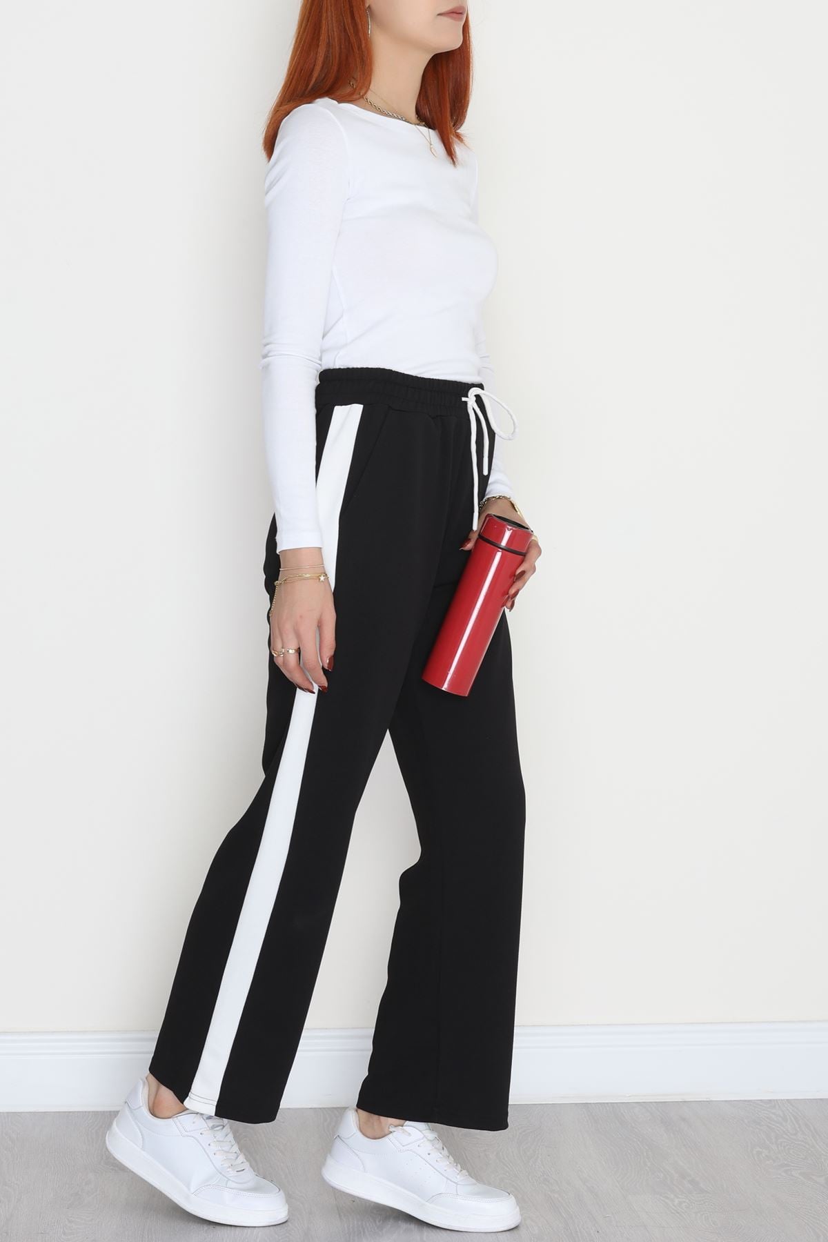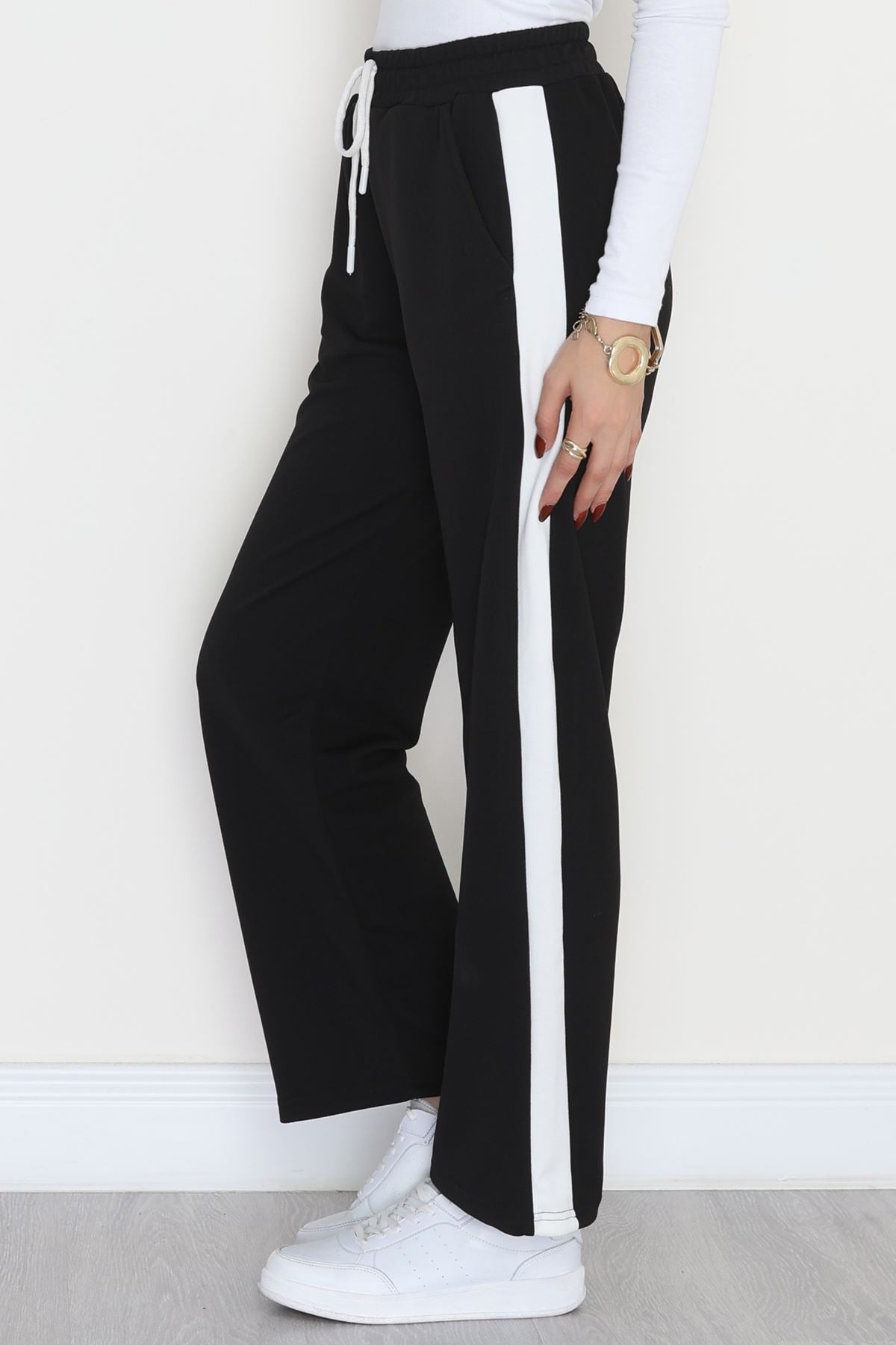 Şerit Detaylı Zra Krep Lastikli Pantolon Siyahbeyaz - 31441.1837.