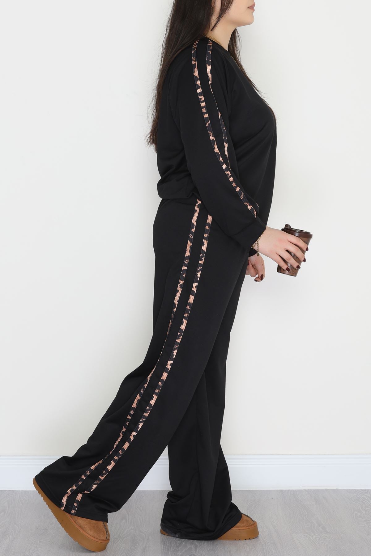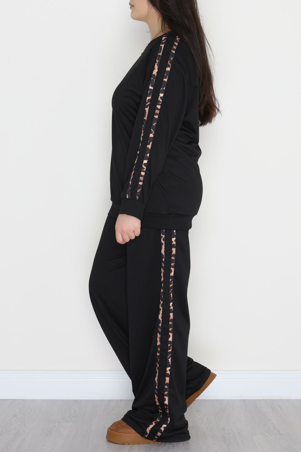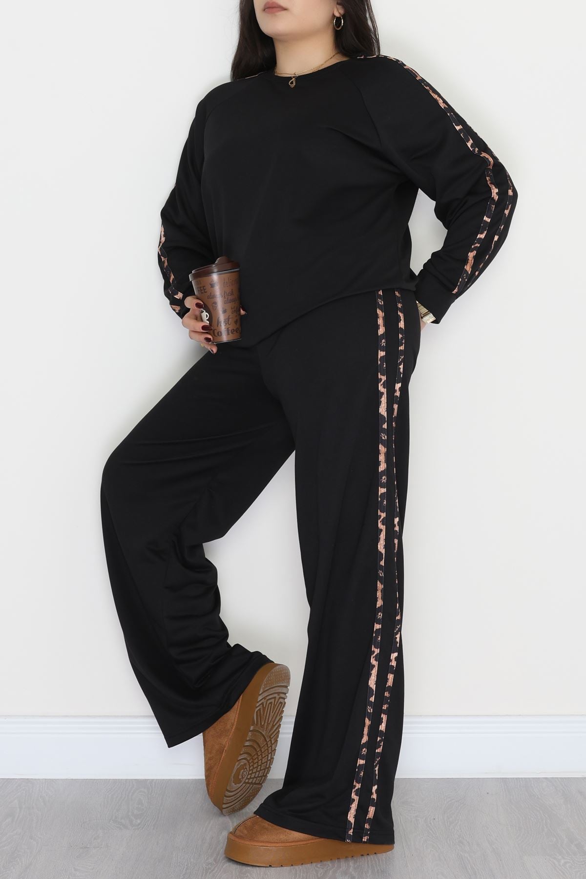 Şeritli 2 İplik Büyük Beden Eşofman Takımı Siyah - 50784.1857.