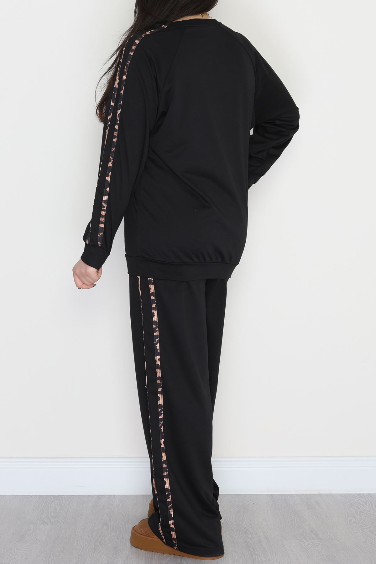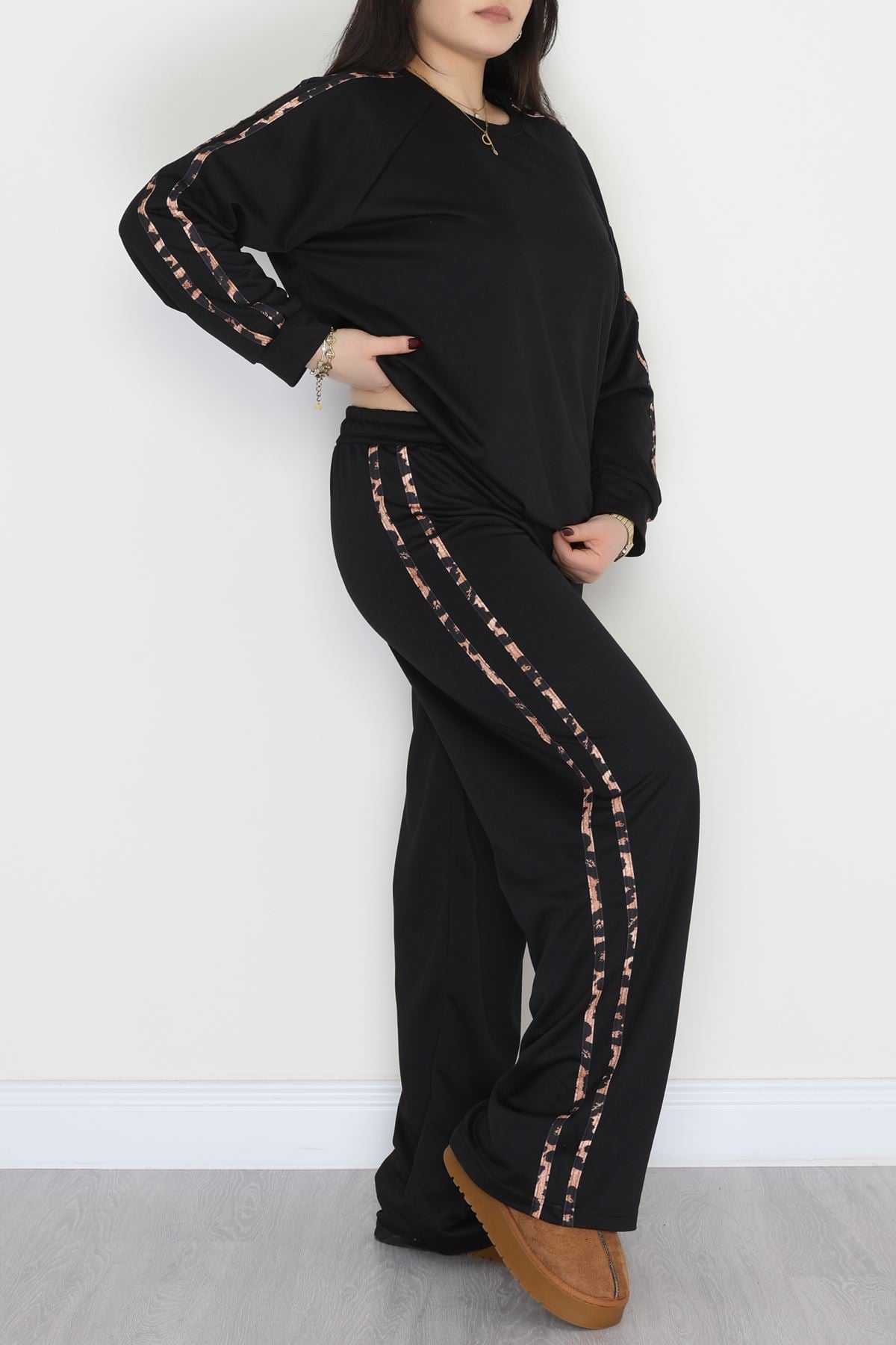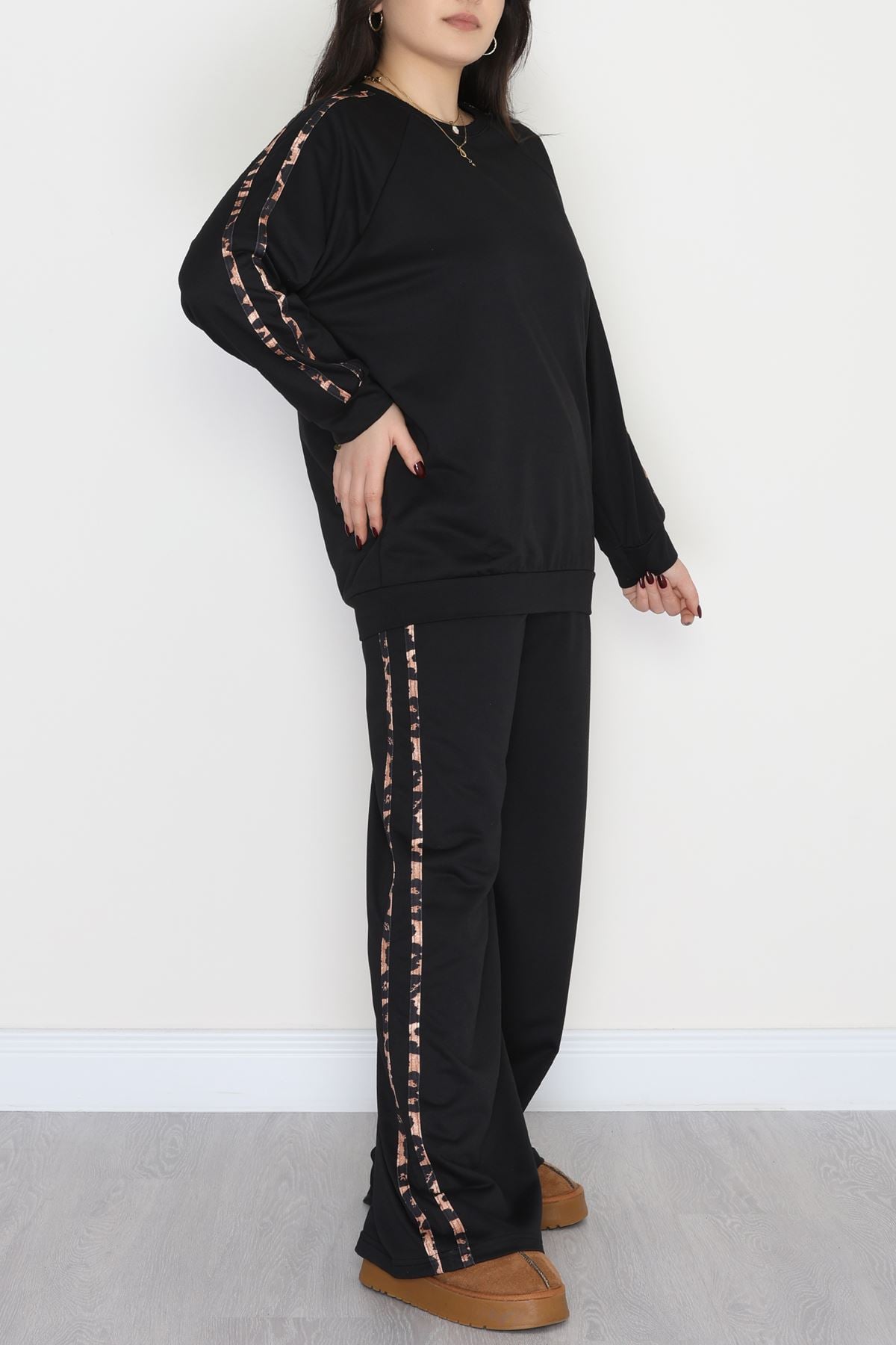 Şeritli 2 İplik Büyük Beden Eşofman Takımı Siyah - 50784.1857.