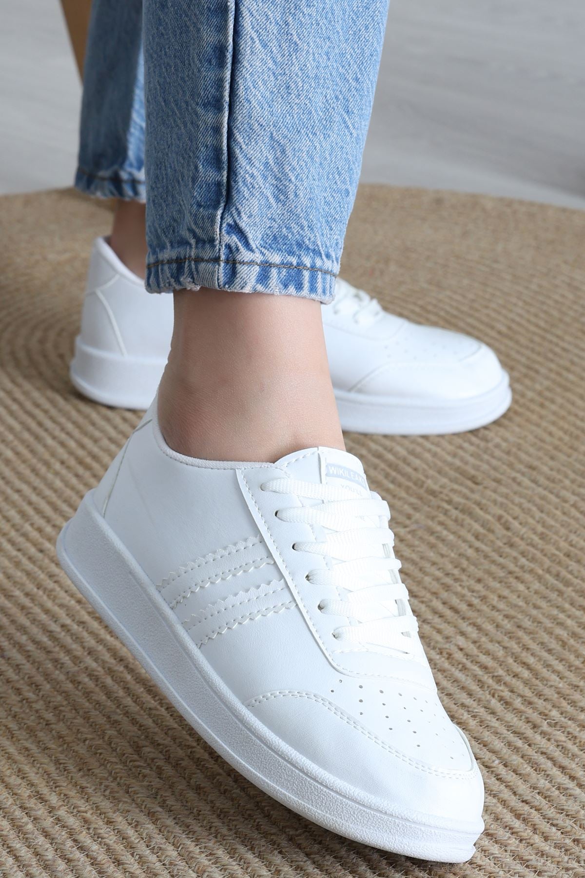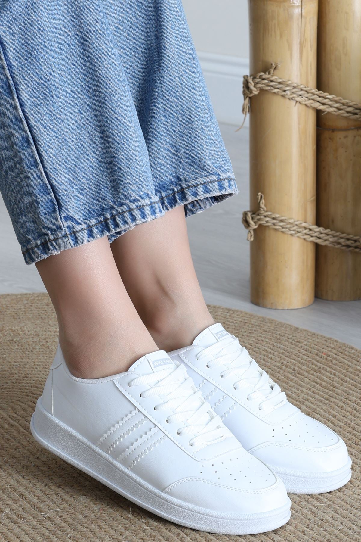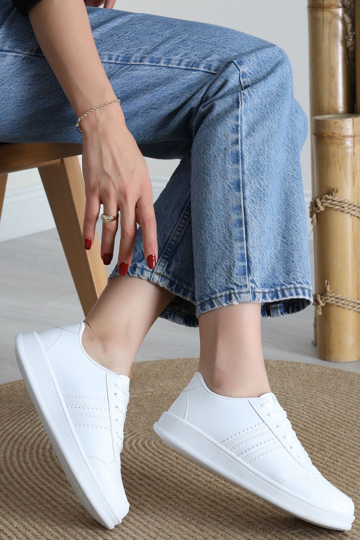 Şeritli Günlük Ayakkabı Beyaz - 17114.264.