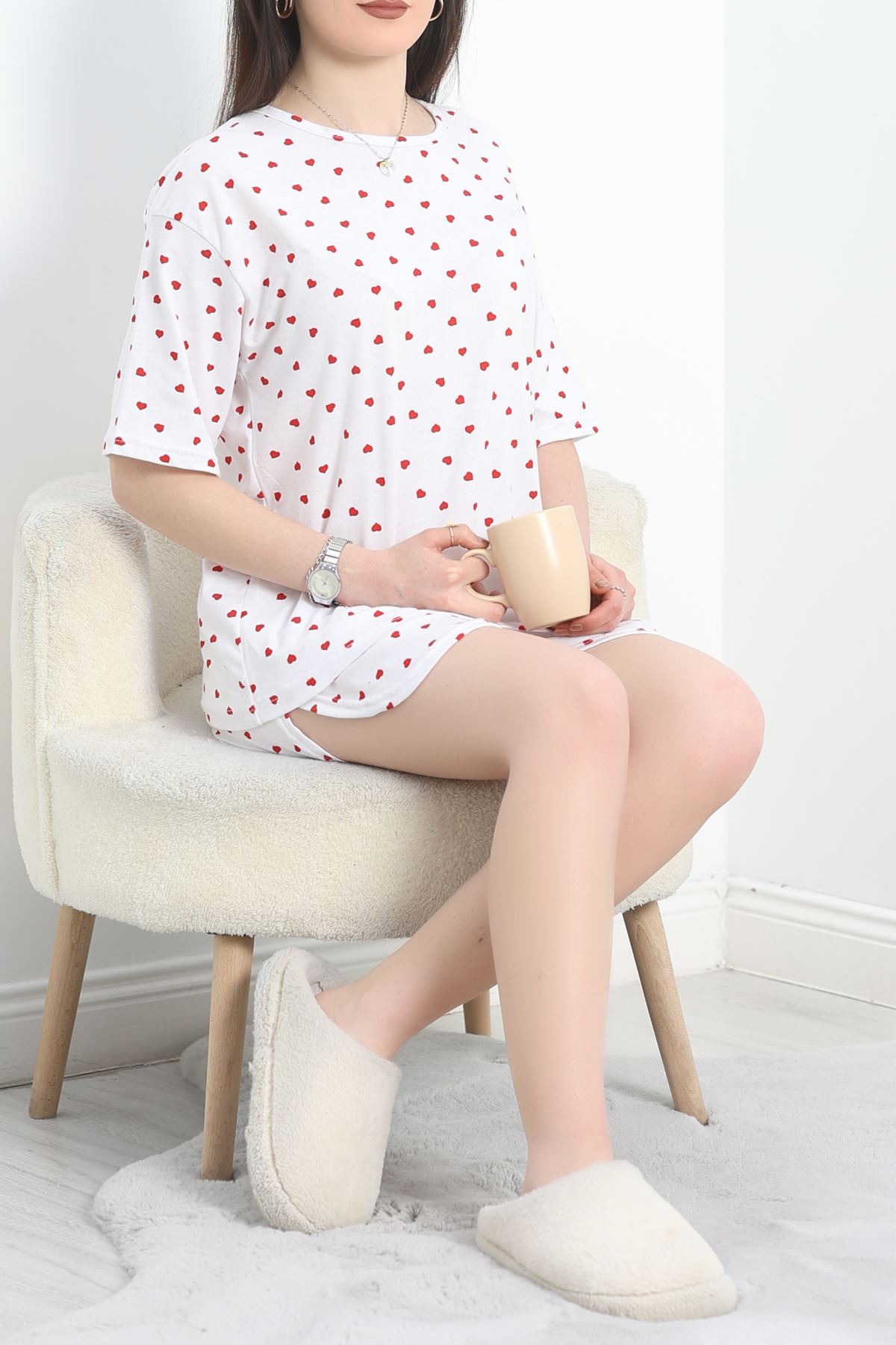 Şortlu Yırtmaçlı Takım. Rahat ve şık tasarımıyla öne çıkan bu takım, evde geçirdiğiniz zamanı daha keyifli hale getirecek. Hemen keşfedin! Şortlu Yırtmaçlı Takım ile konforu ve şıklığı bir arada yaşayın. Yumuşak dokusu ve rahat kesimi sayesinde gün boyu üzerinizde yokmuş gibi hissedeceksiniz. Yırtmaç detayıyla hareket özgürlüğünüzü kısıtlamayan bu takım, ev giyiminde tarzınızı yansıtmanızı sağlar. Üzerindeki sevimli desenler, takıma ayrı bir hava katarken, şortlu tasarımı sıcak havalarda serin kalmanıza yardımcı olur. İster evde dinlenirken, ister misafirlerinizi ağırlarken, her zaman şık ve rahat olmanın keyfini çıkarın.