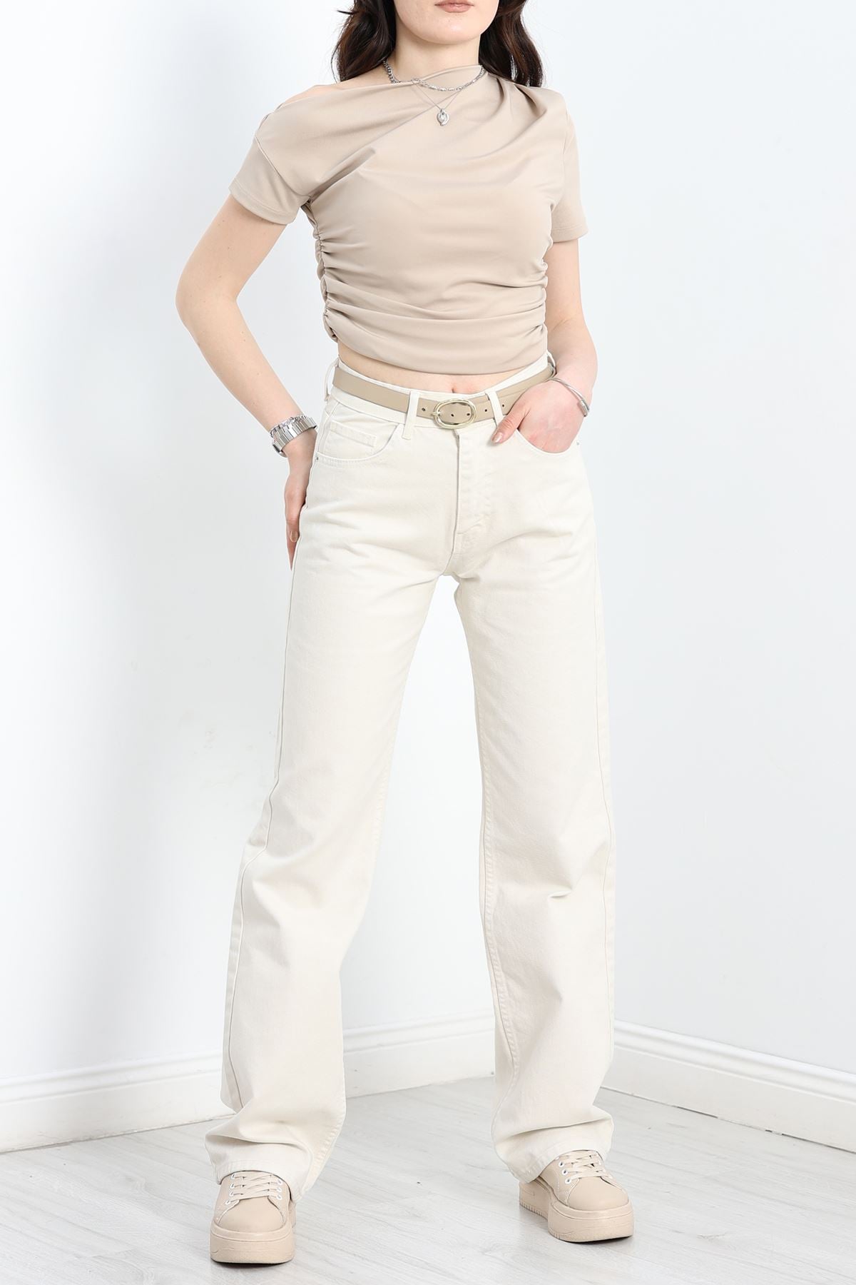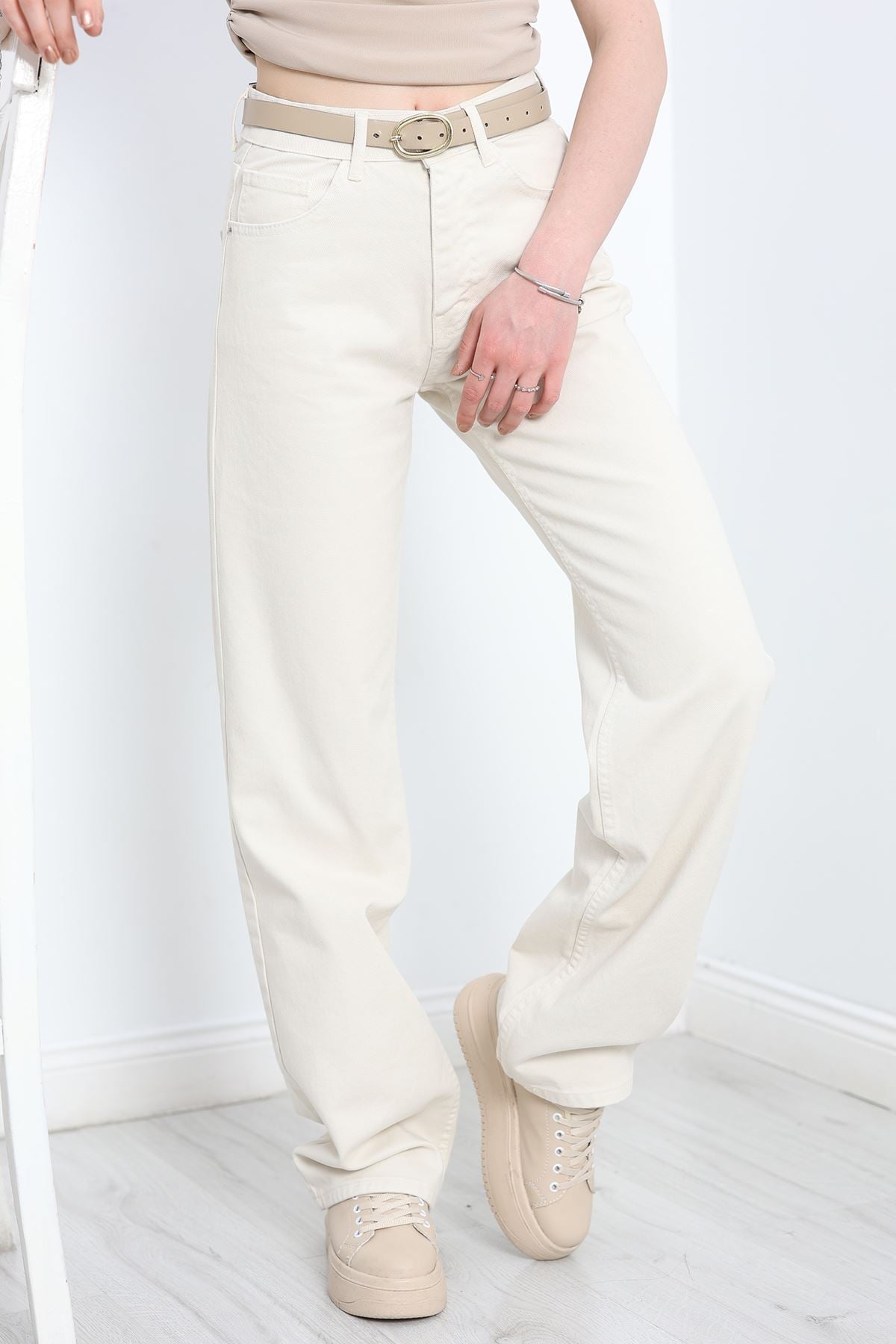 Straight Kesim Kot Pantolon Krem - 30533.1975.