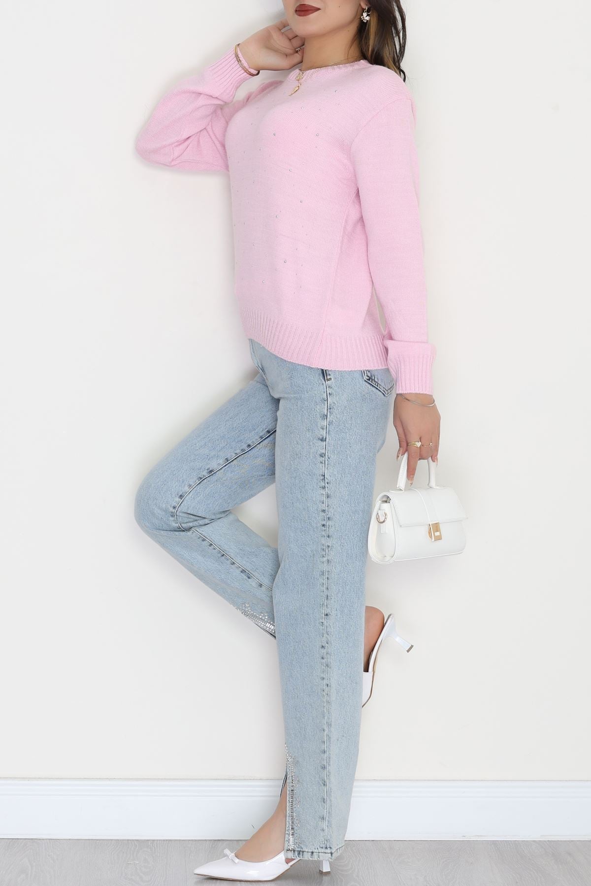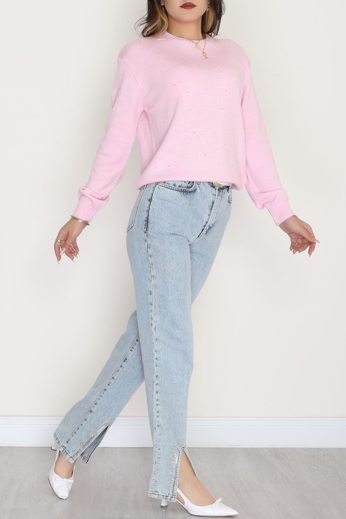 Taş Detaylı Triko Pembe - 2399.1765.