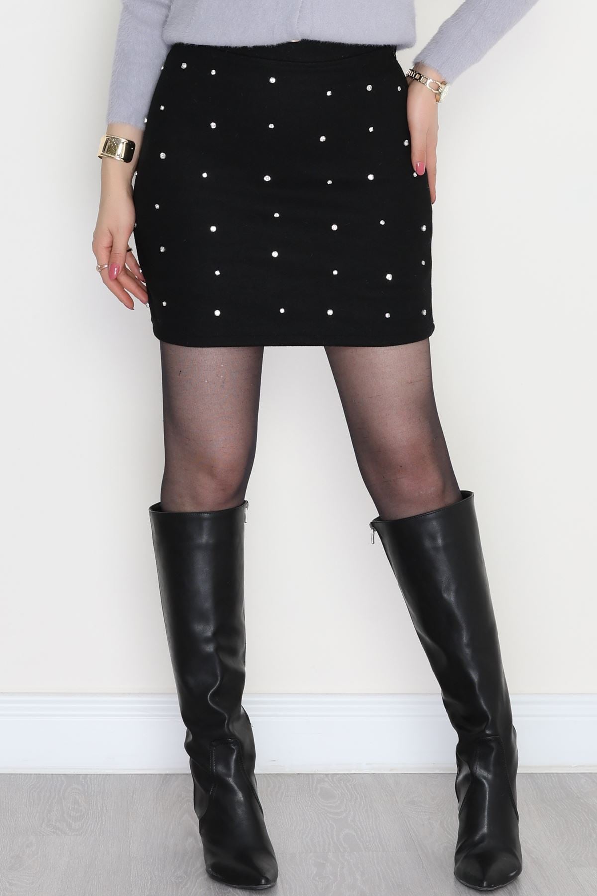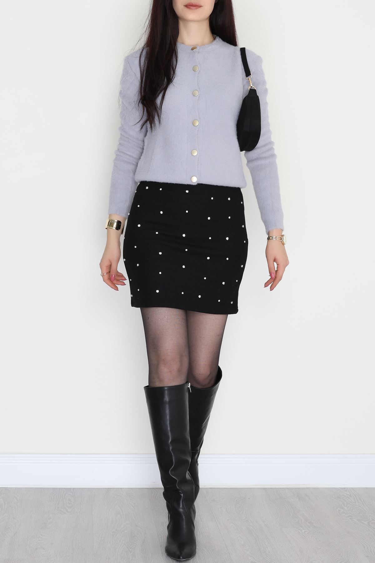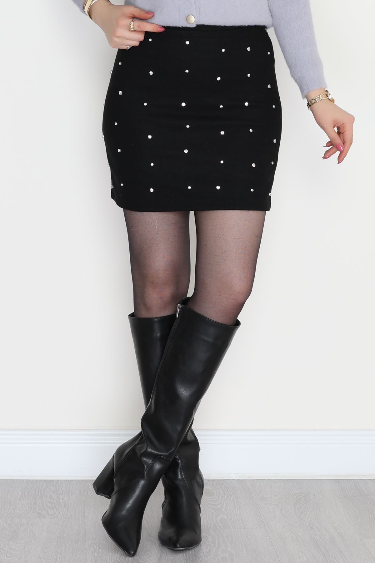 Taşlı Mini Kaşe Etek Siyah - 51013.155.