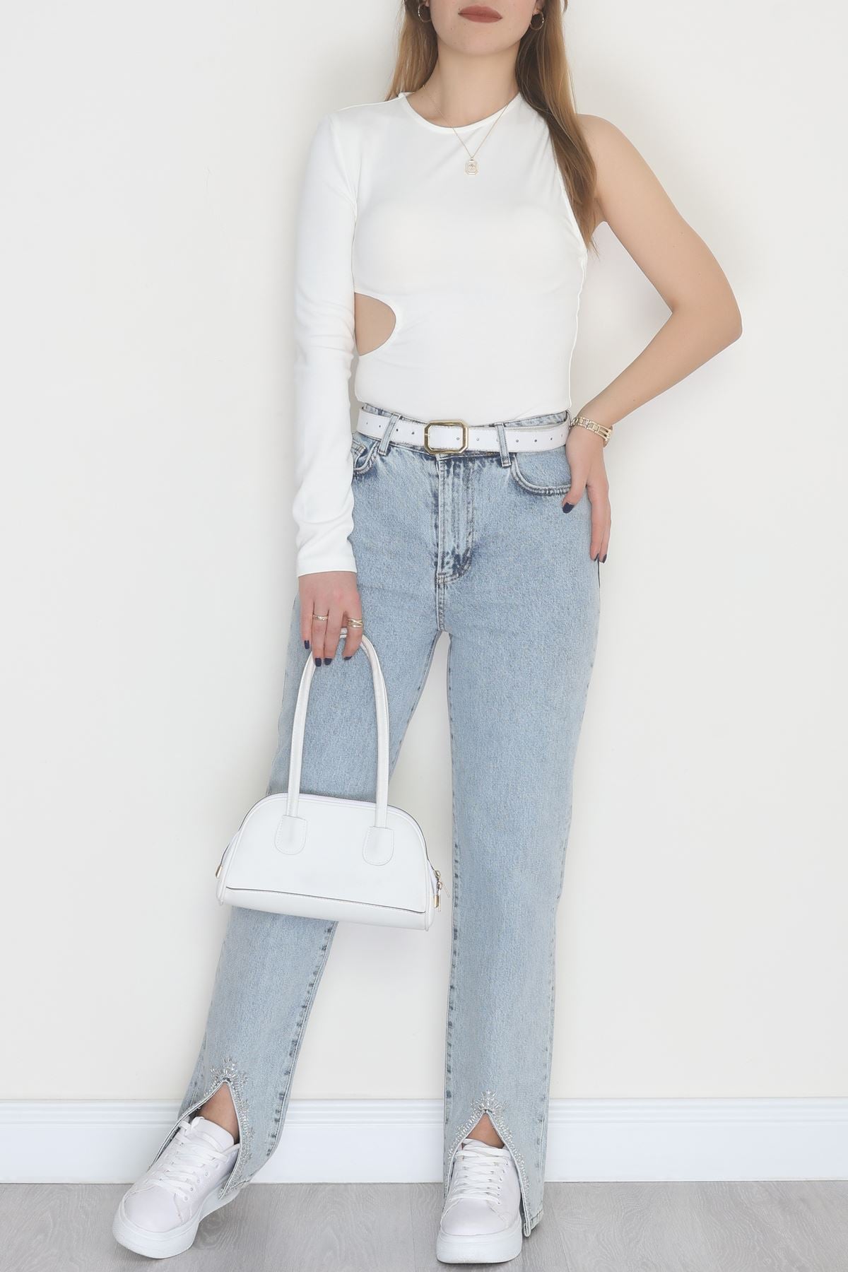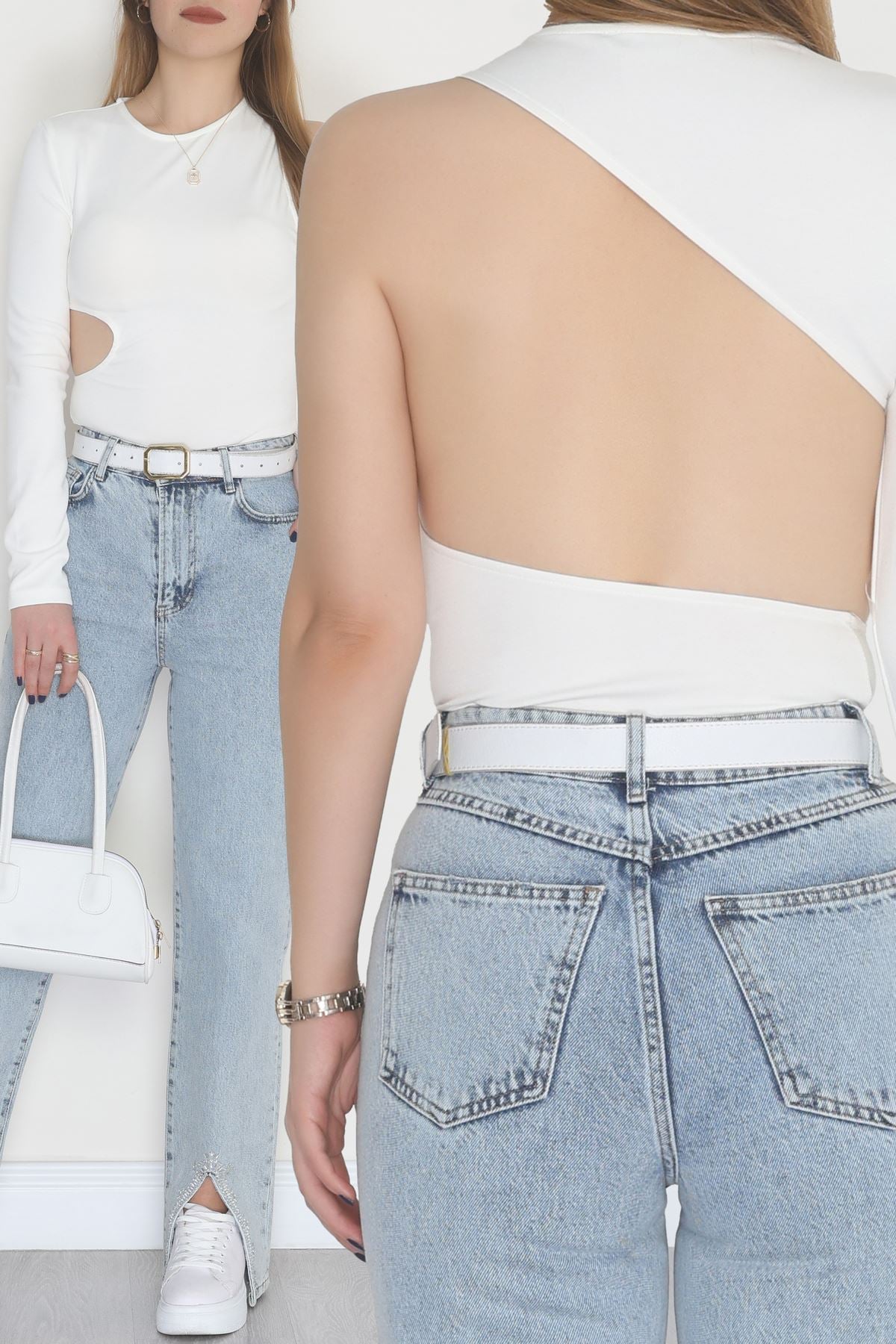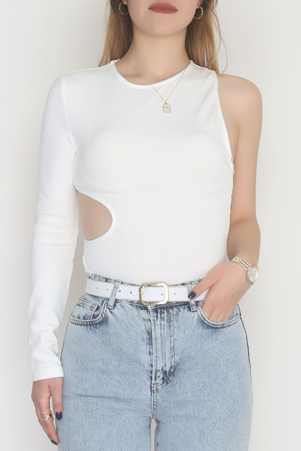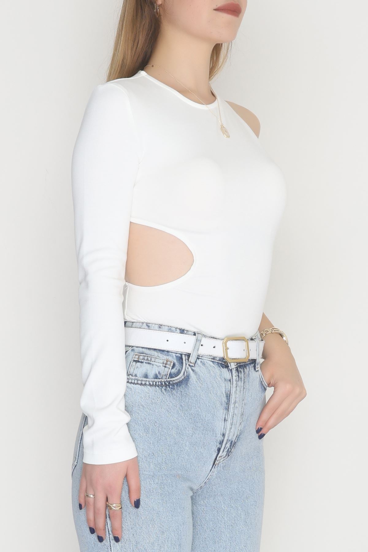 Tek Kollu Sırt Detay Bodysuıt Krem - 71518.444.