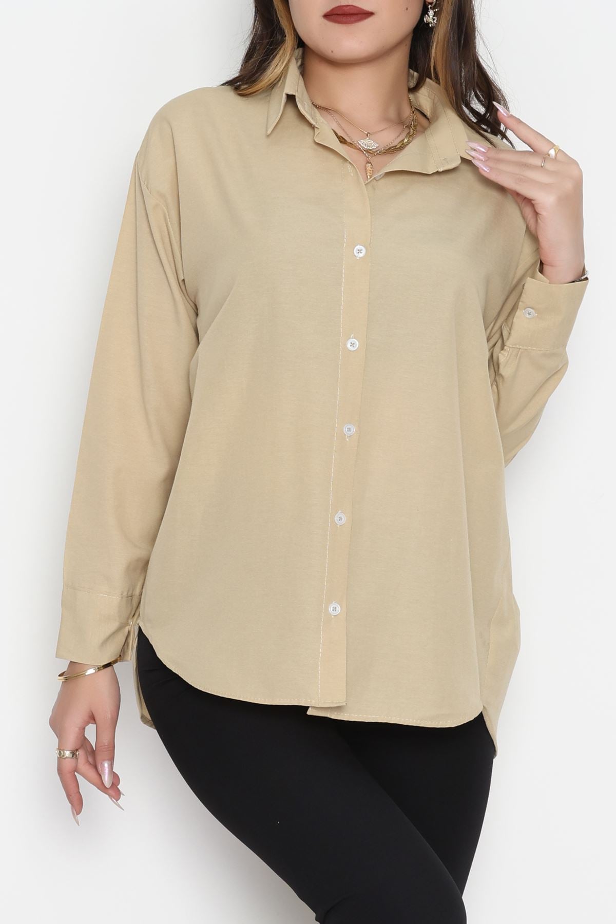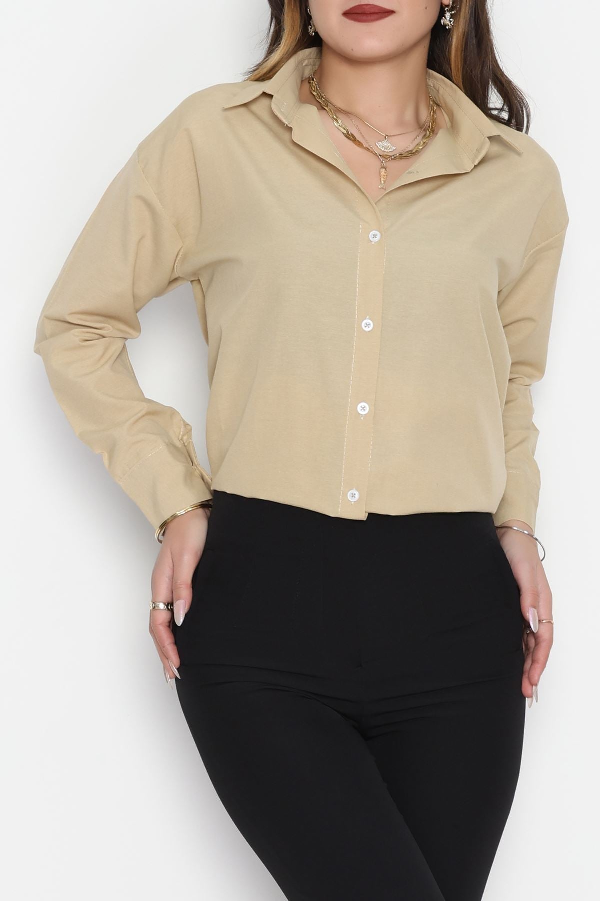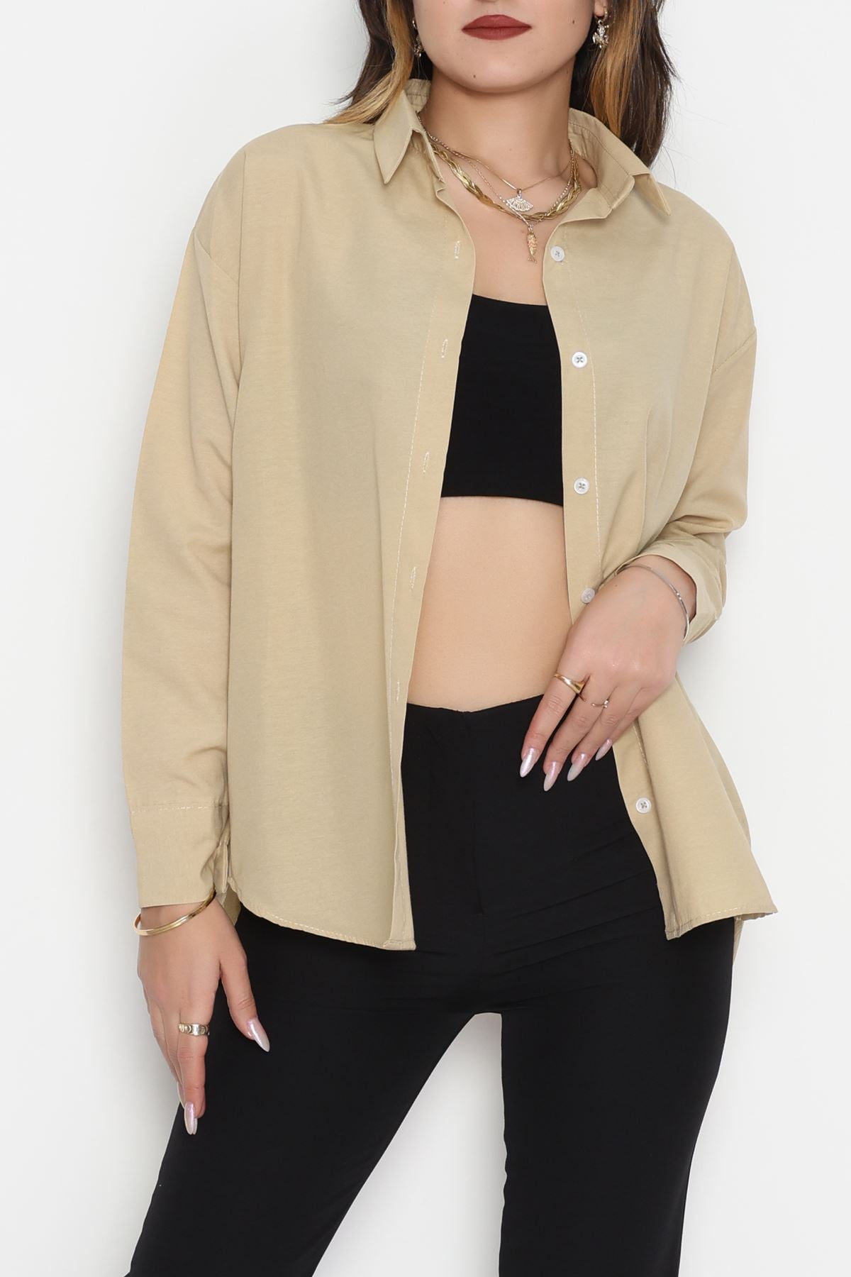 Terikoton Oversize Gömlek Vizon - 30829.2111.