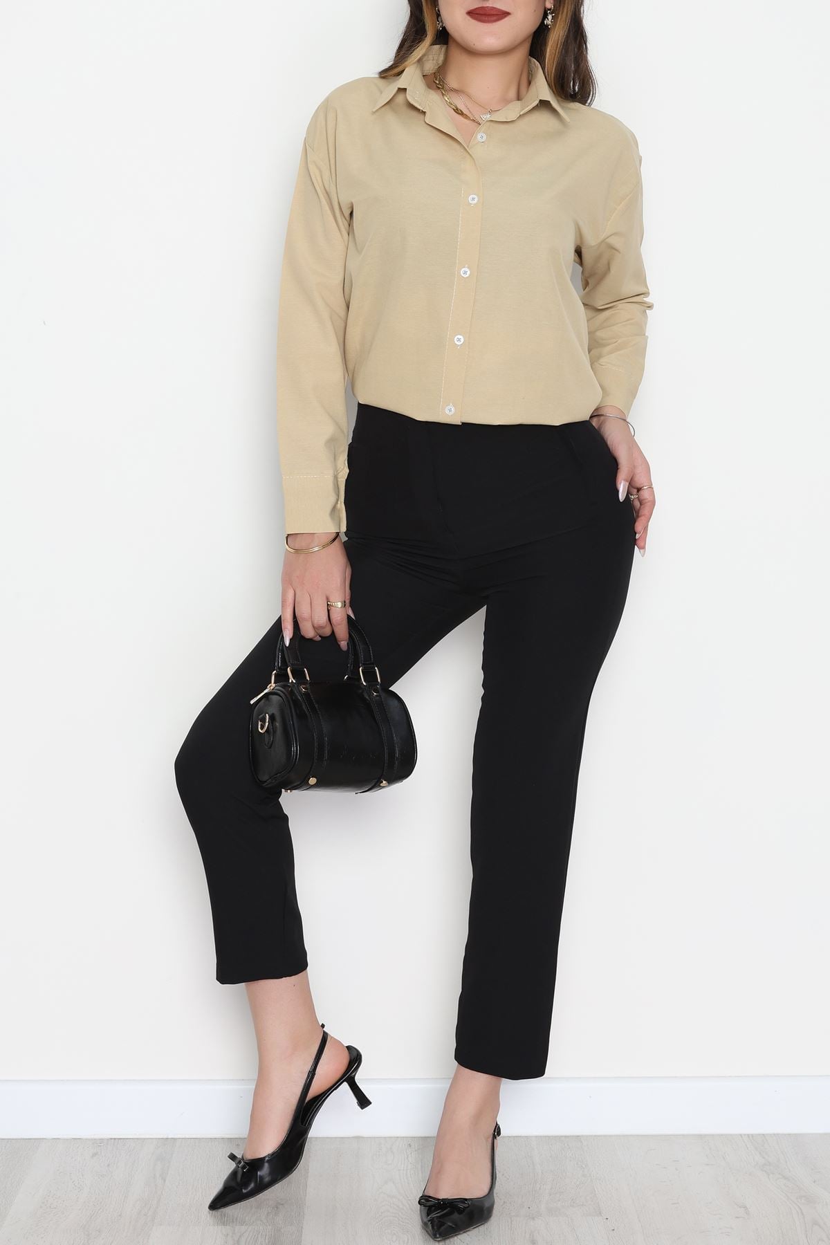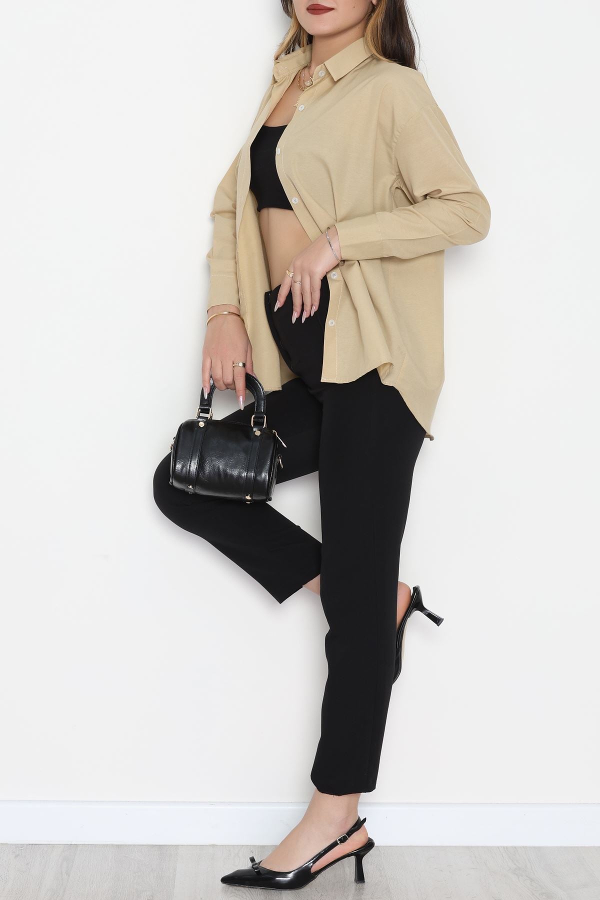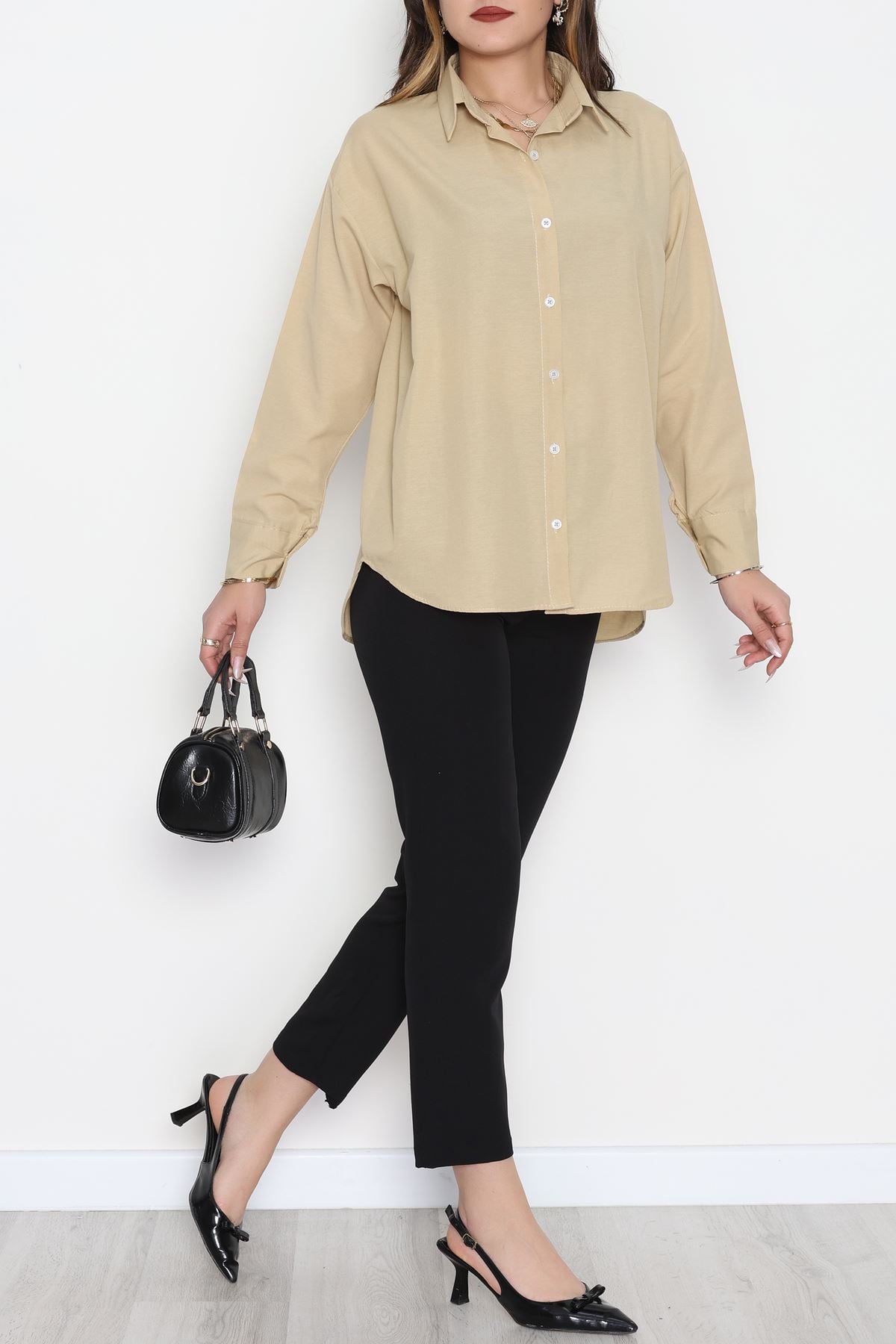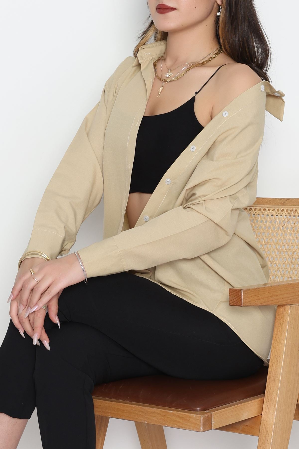 Terikoton Oversize Gömlek Vizon - 30829.2111.