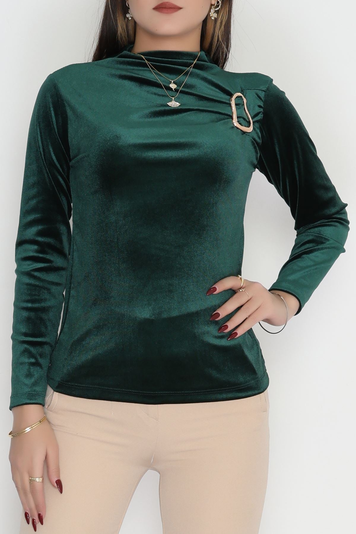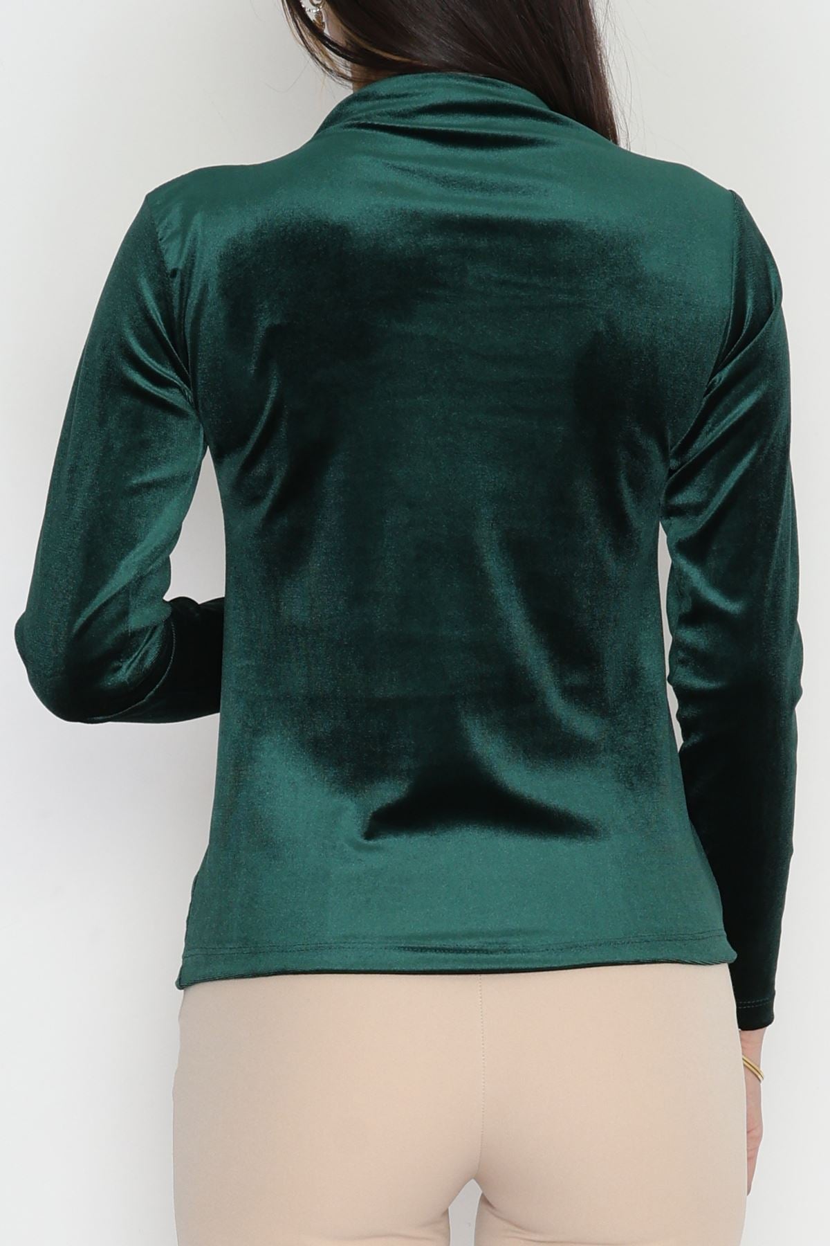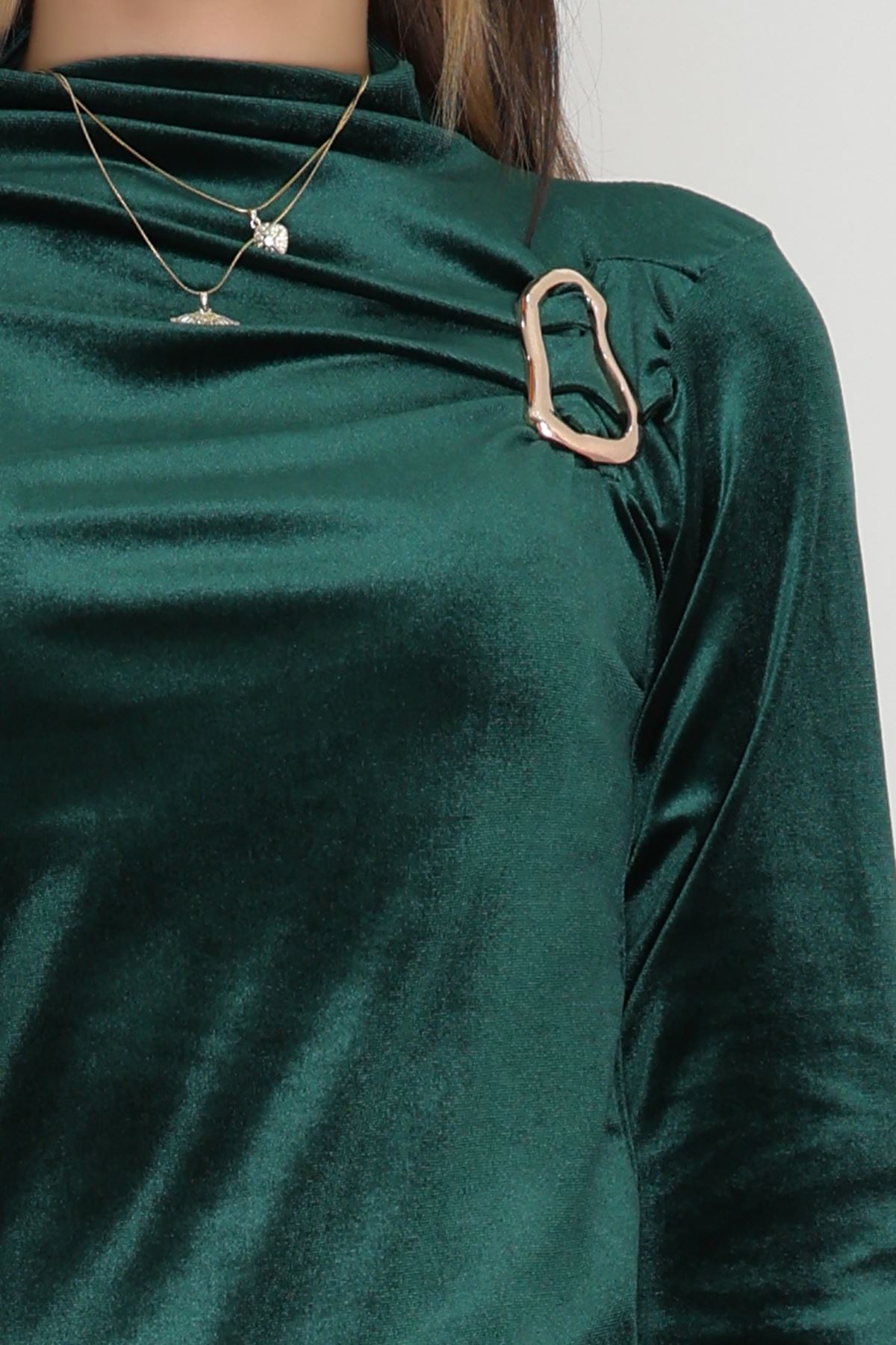 Toka Detaylı Kadife Bluz Zümrüt - 42665.1949.