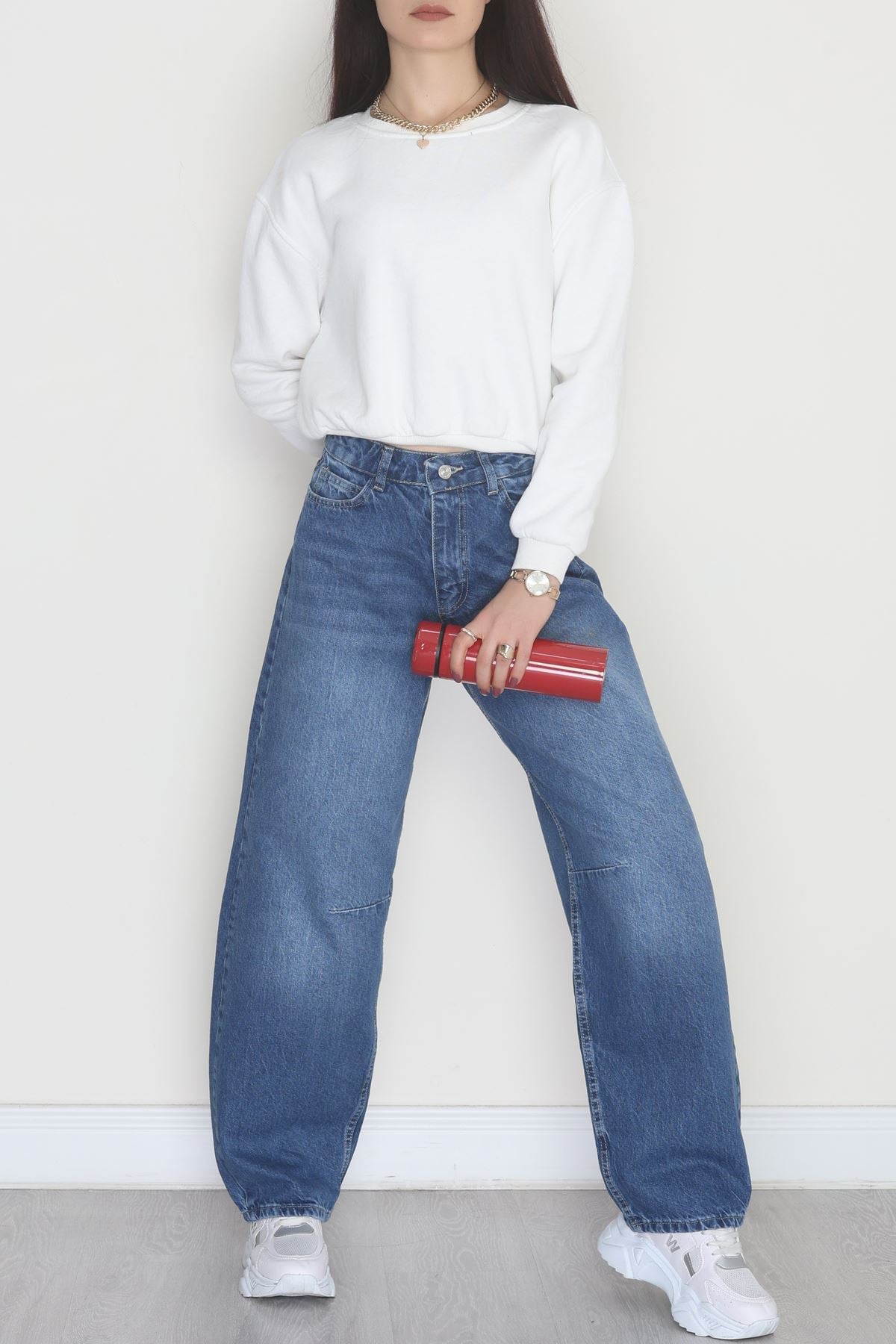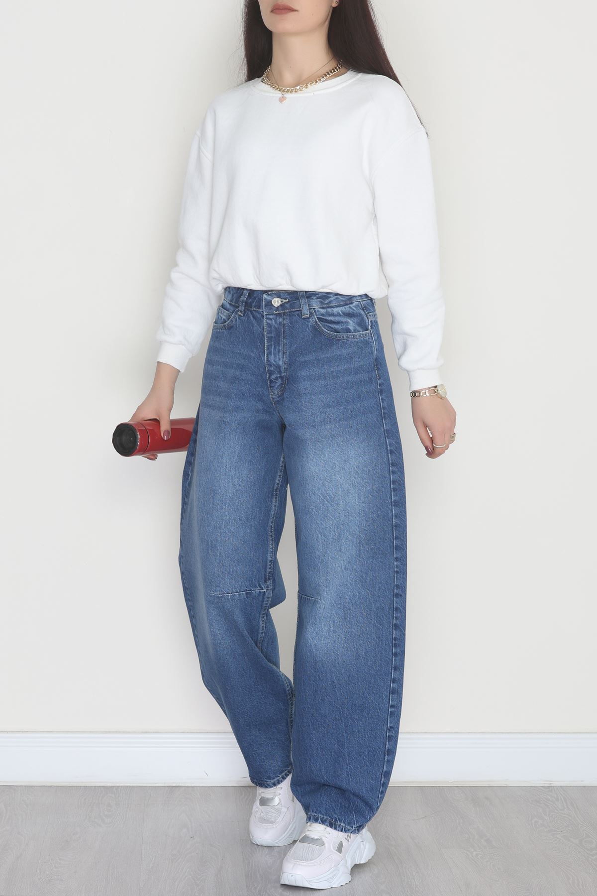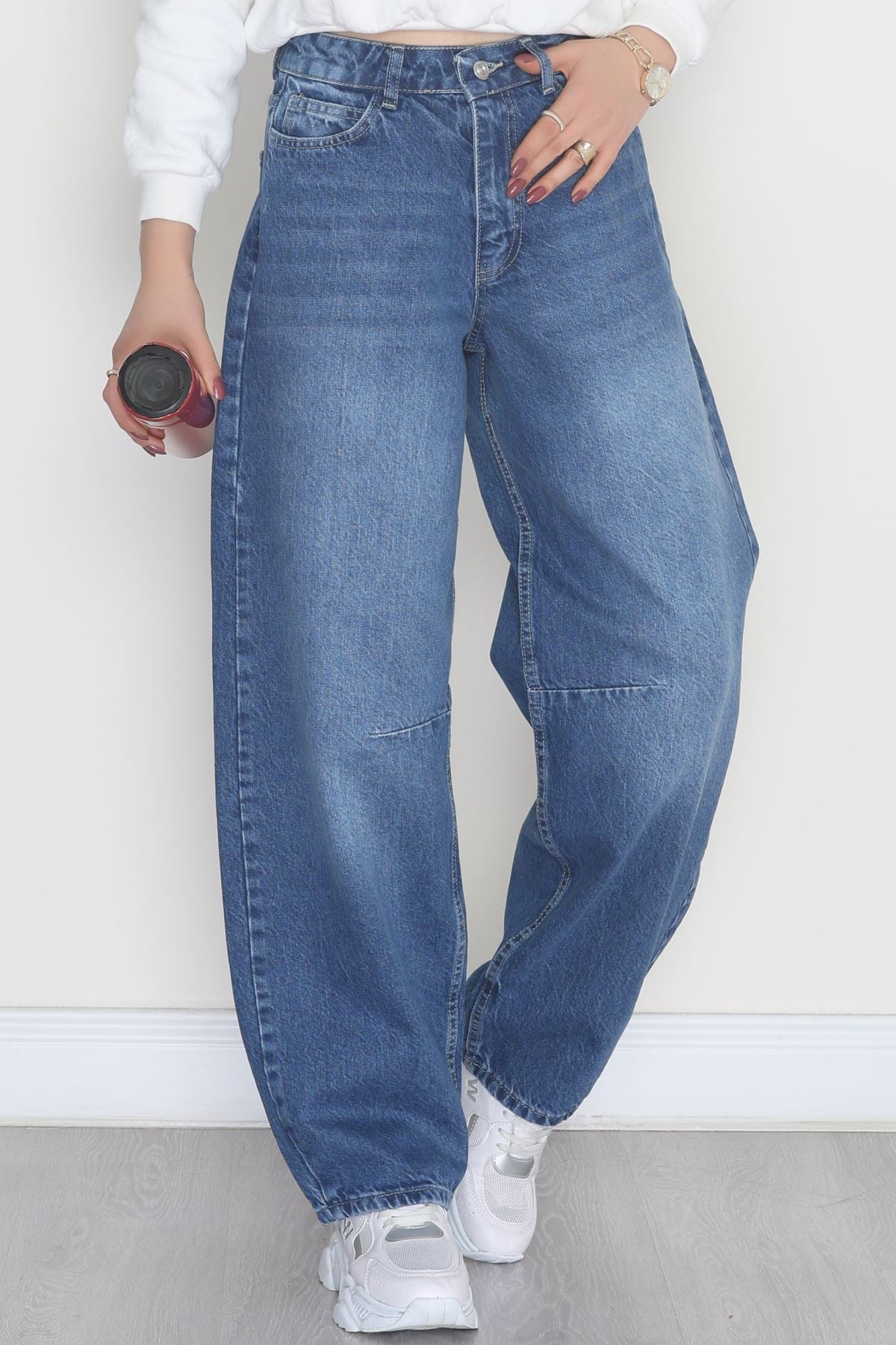 Tokalı Baggy Kot Pantolon Mavi - 31581.1184.
