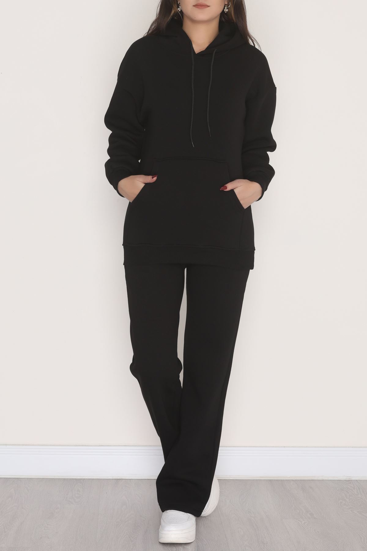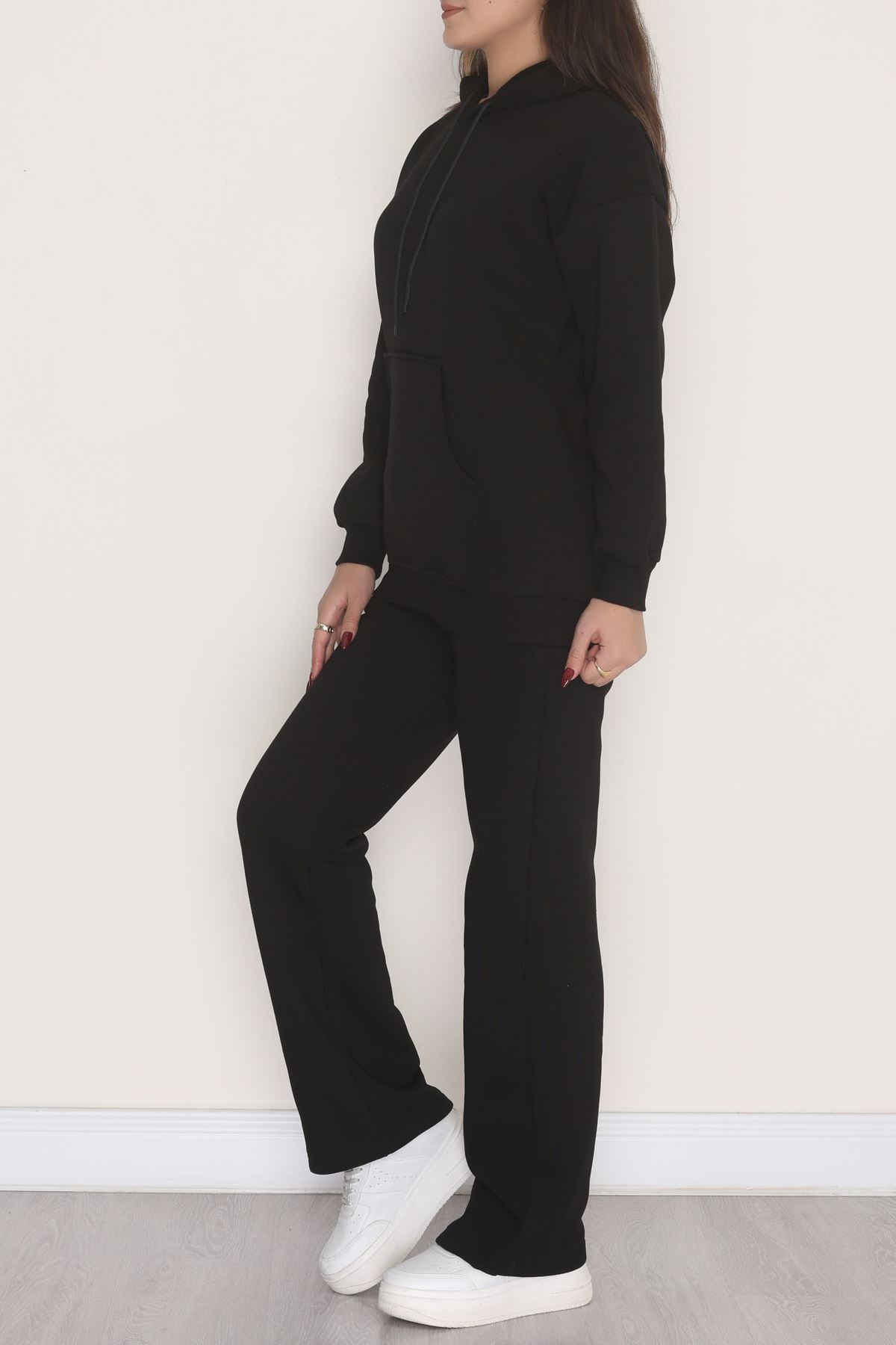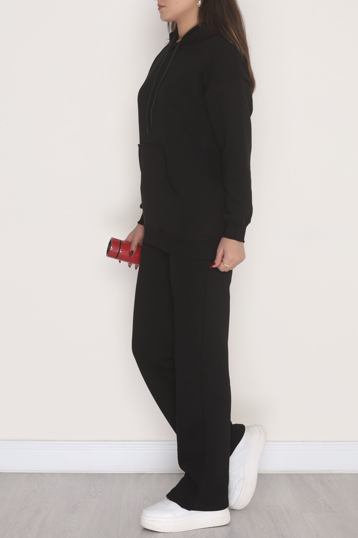 Üç İplik Kanguru Cep Eşofman Takımı Siyah - 70777.1878.