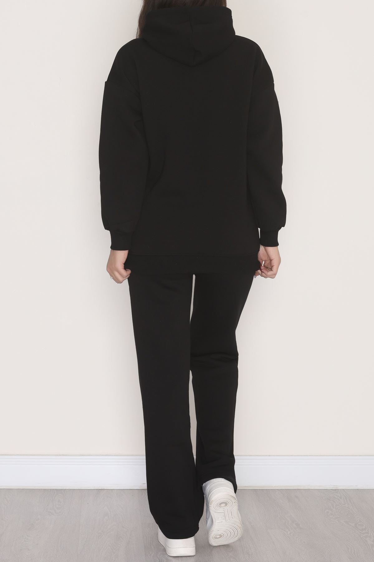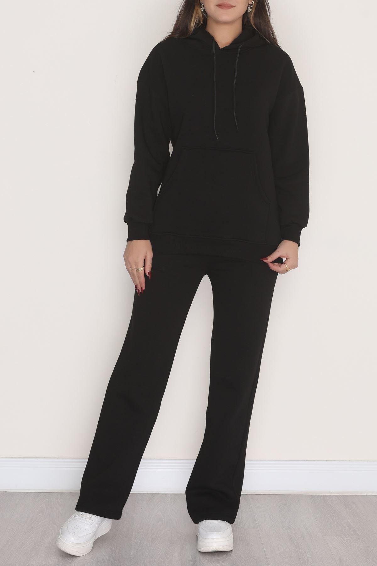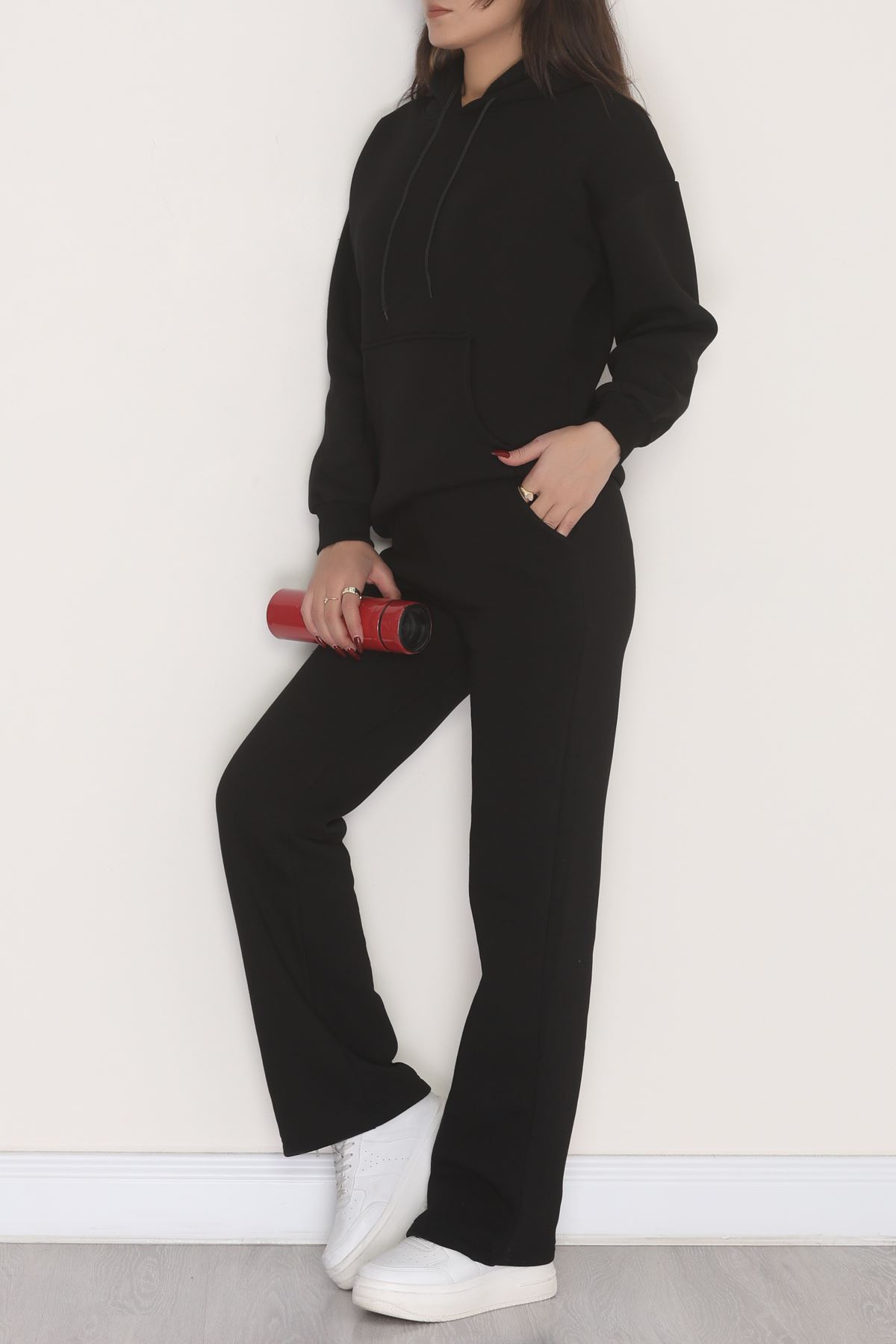 Üç İplik Kanguru Cep Eşofman Takımı Siyah - 70777.1878.