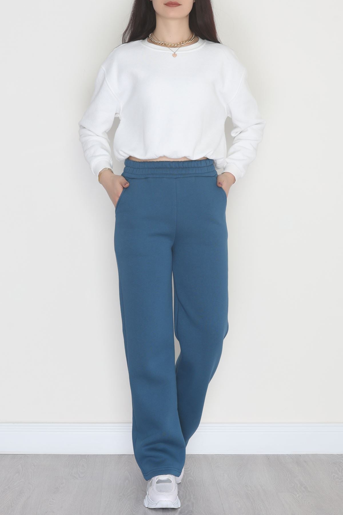 Üç İplik Palazzo Eşofman Altı Petrol - 20970.1878.