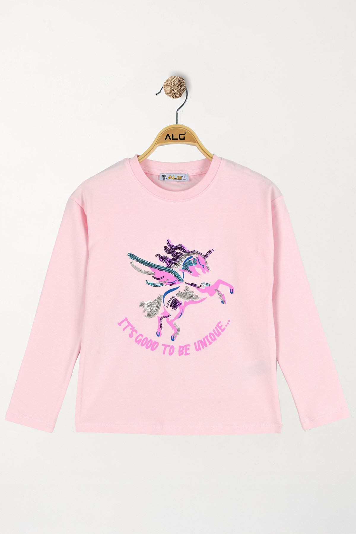 Nakışlı 6-9 Yaş Sweatshirt Açıkpembe - 6264181.1576.