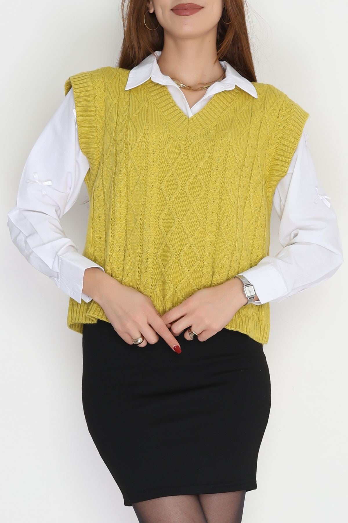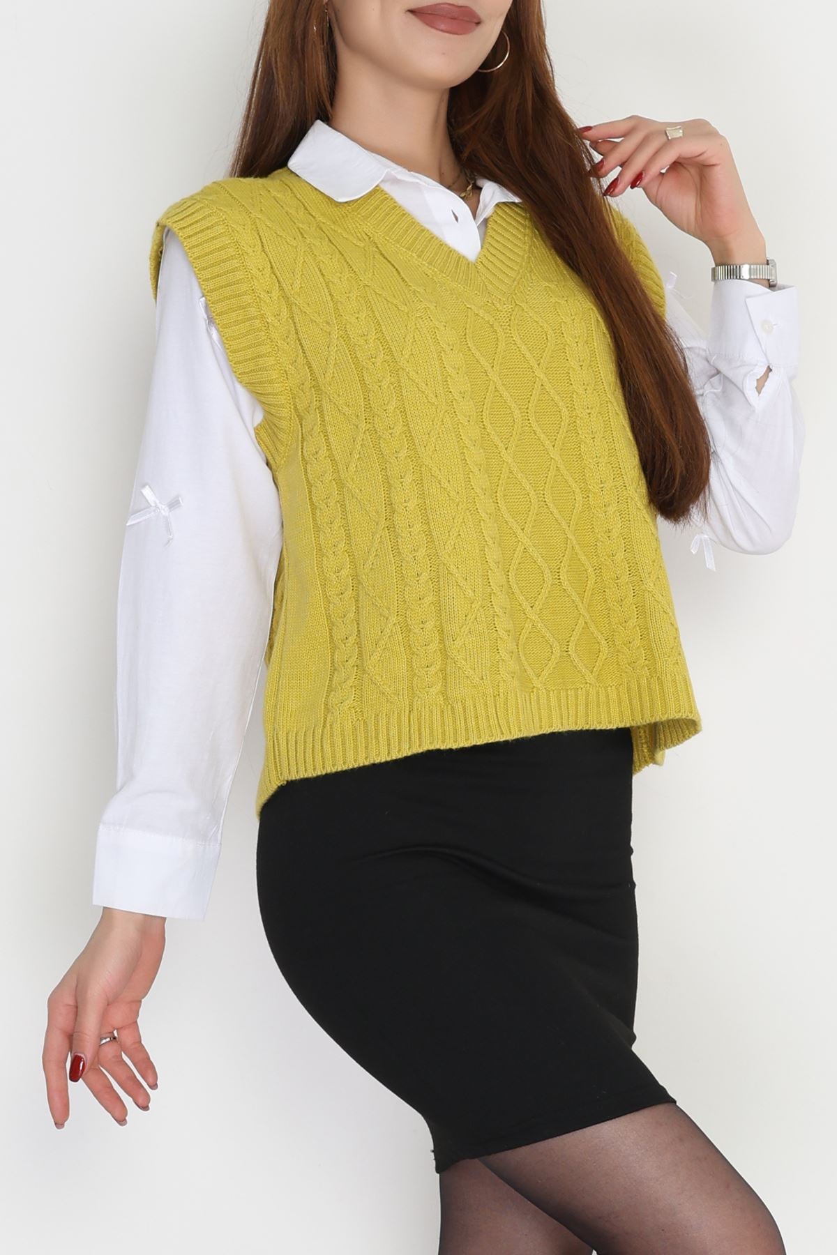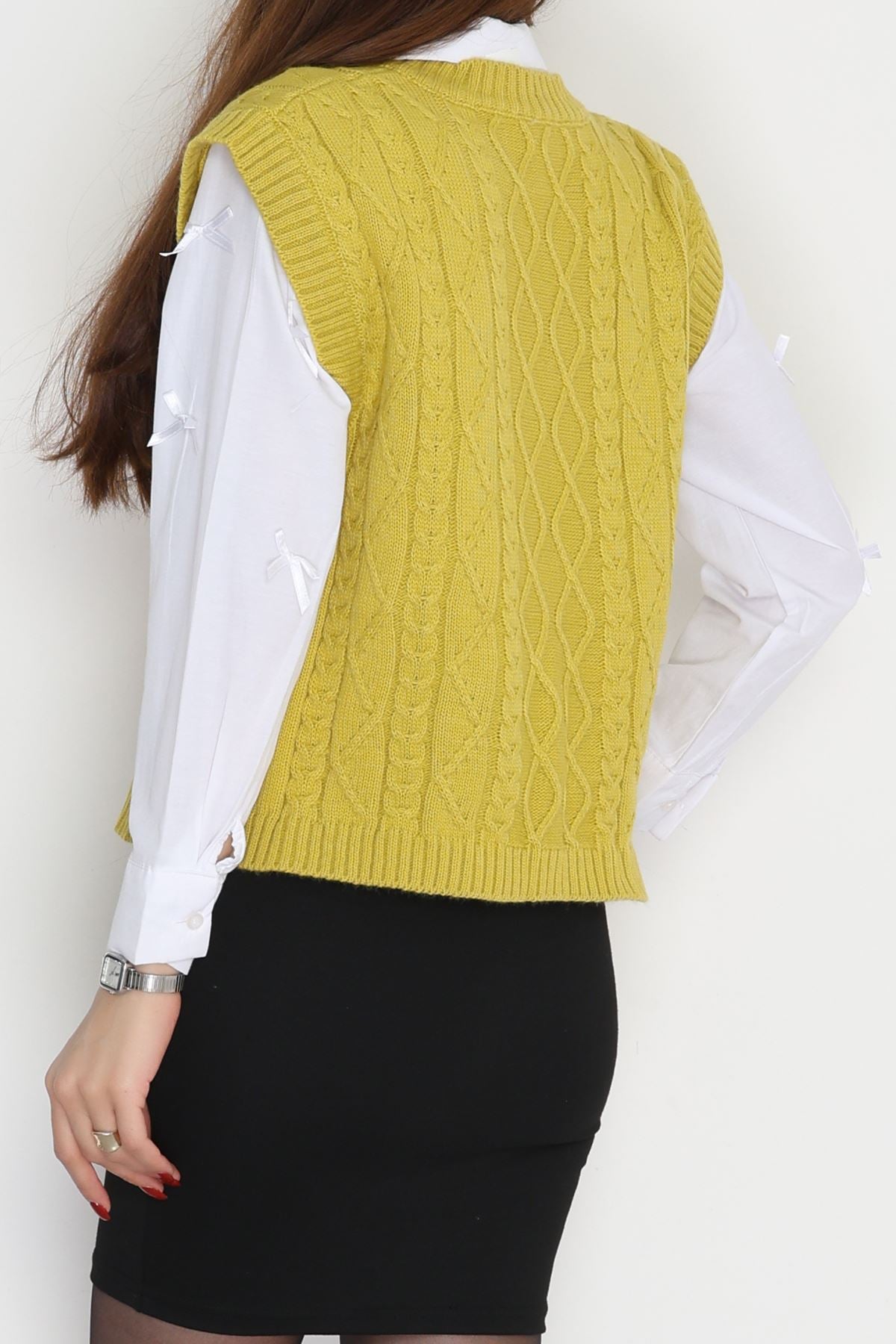 V Yaka Süveter Yağyeşili - 4049.1577.