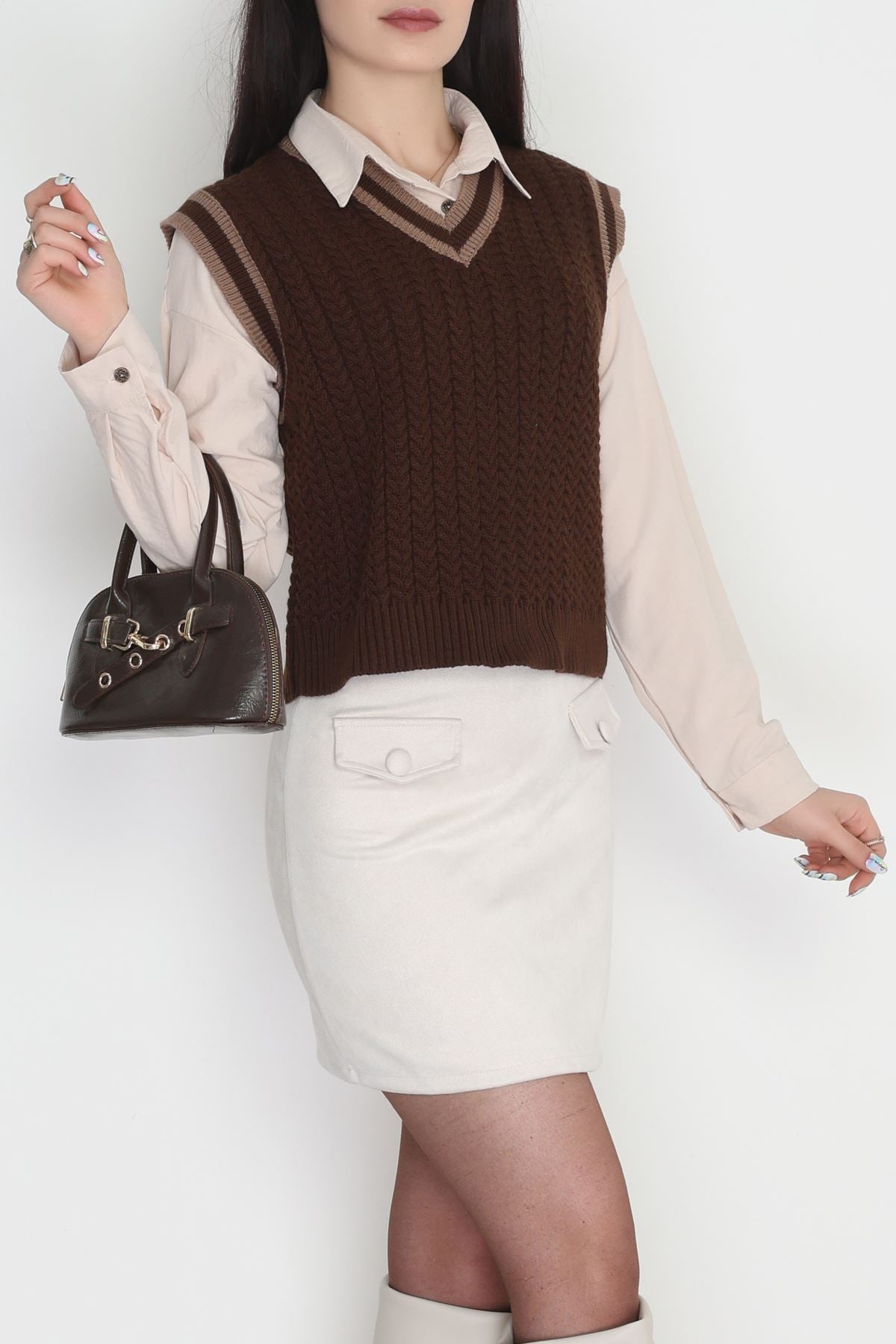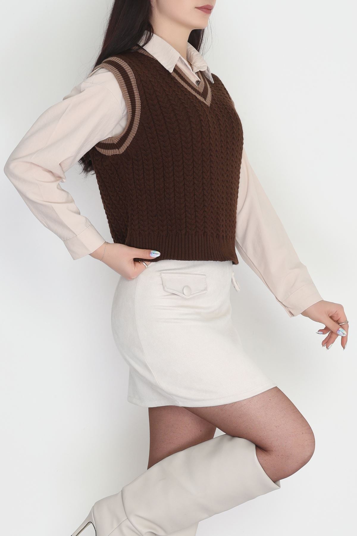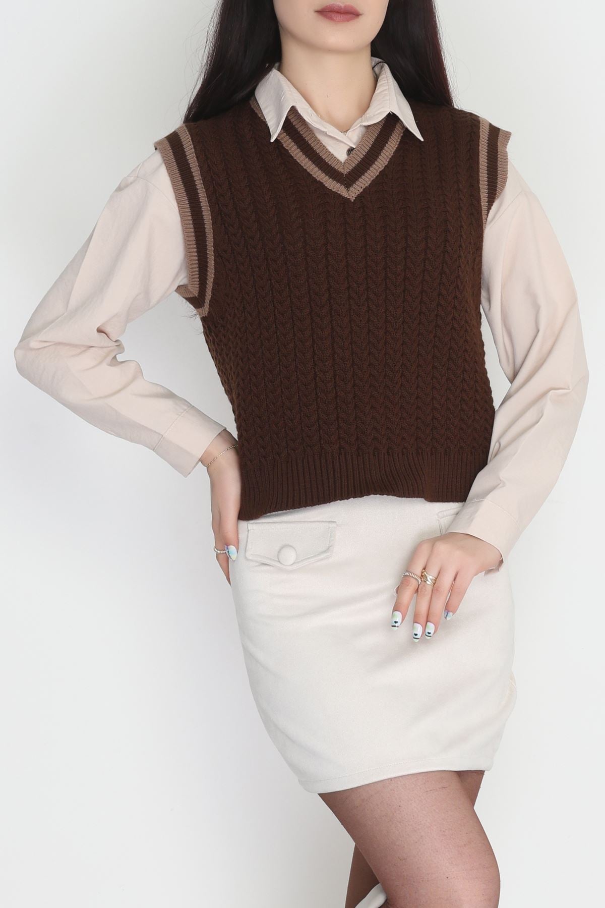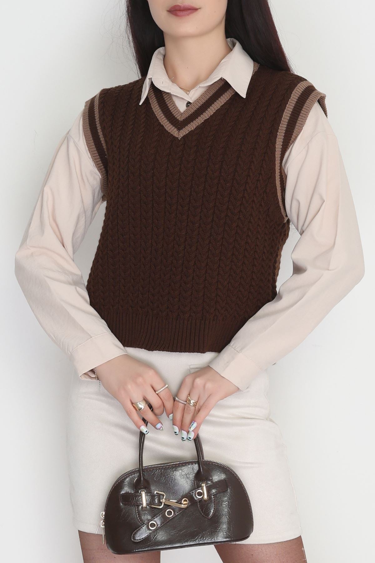 V Yaka Triko Süveter Kahvemocha - 493.1577.