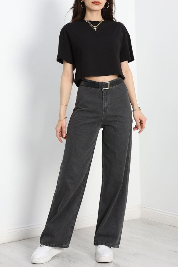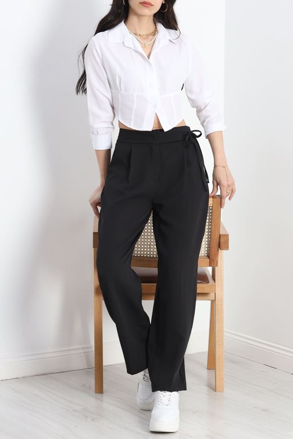 Kemer Cırtlı Krep Pantolon Siyah - 20255.1865.