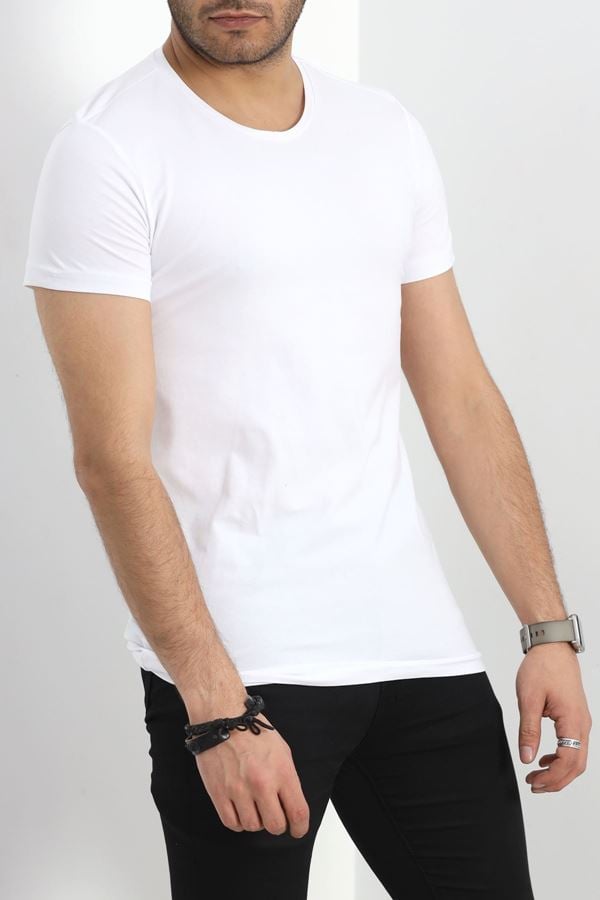Kapşonlu Biyeli Erkek Sweat Beyaz - 42637.1937.