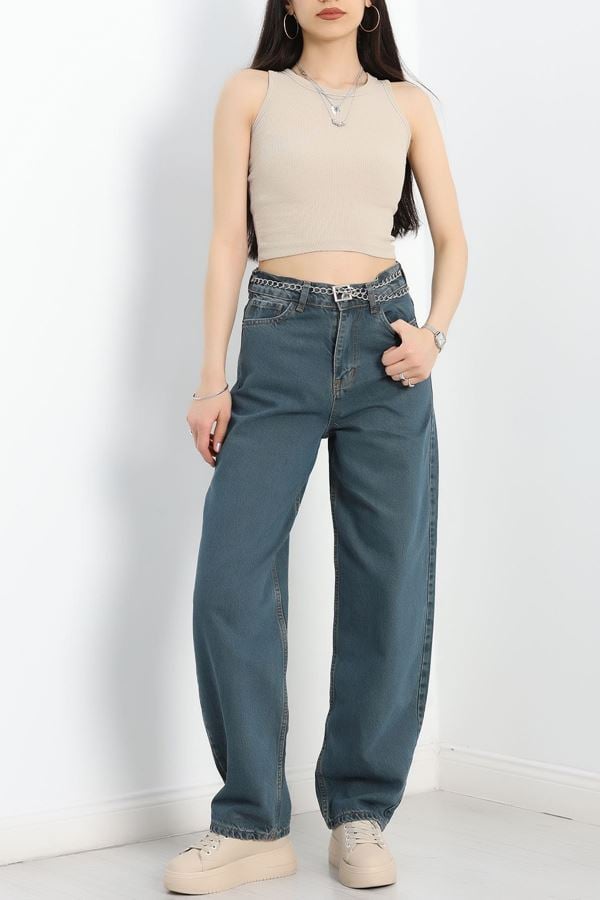 Geniş Paça Palazzo Kot Pantolon Lacivert - 31564.2059.