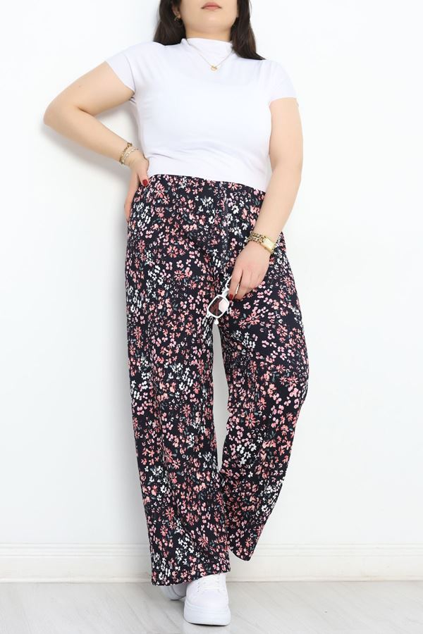 Double Kumaş Palazzo Pantolon Lacivert - 90158.1920.