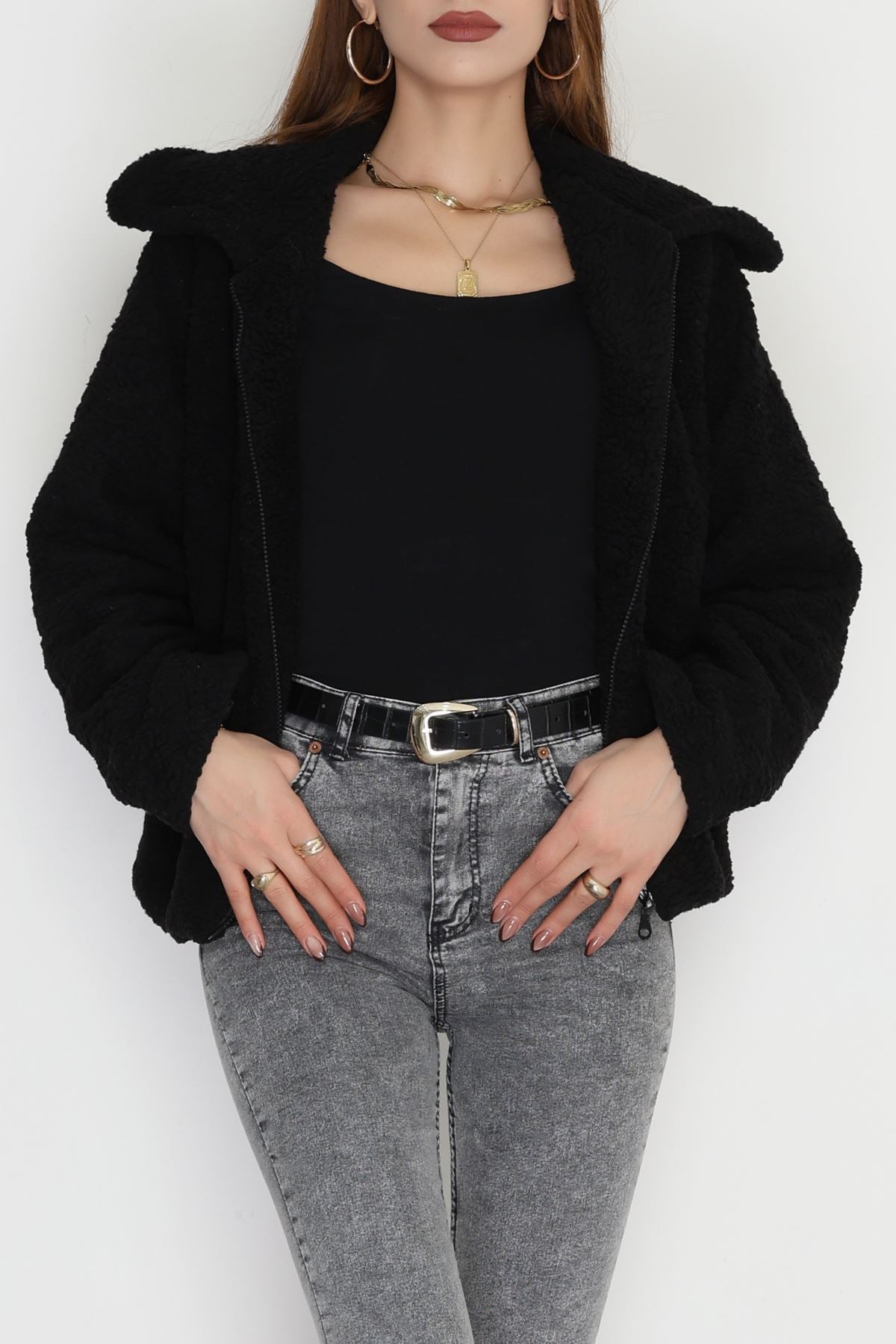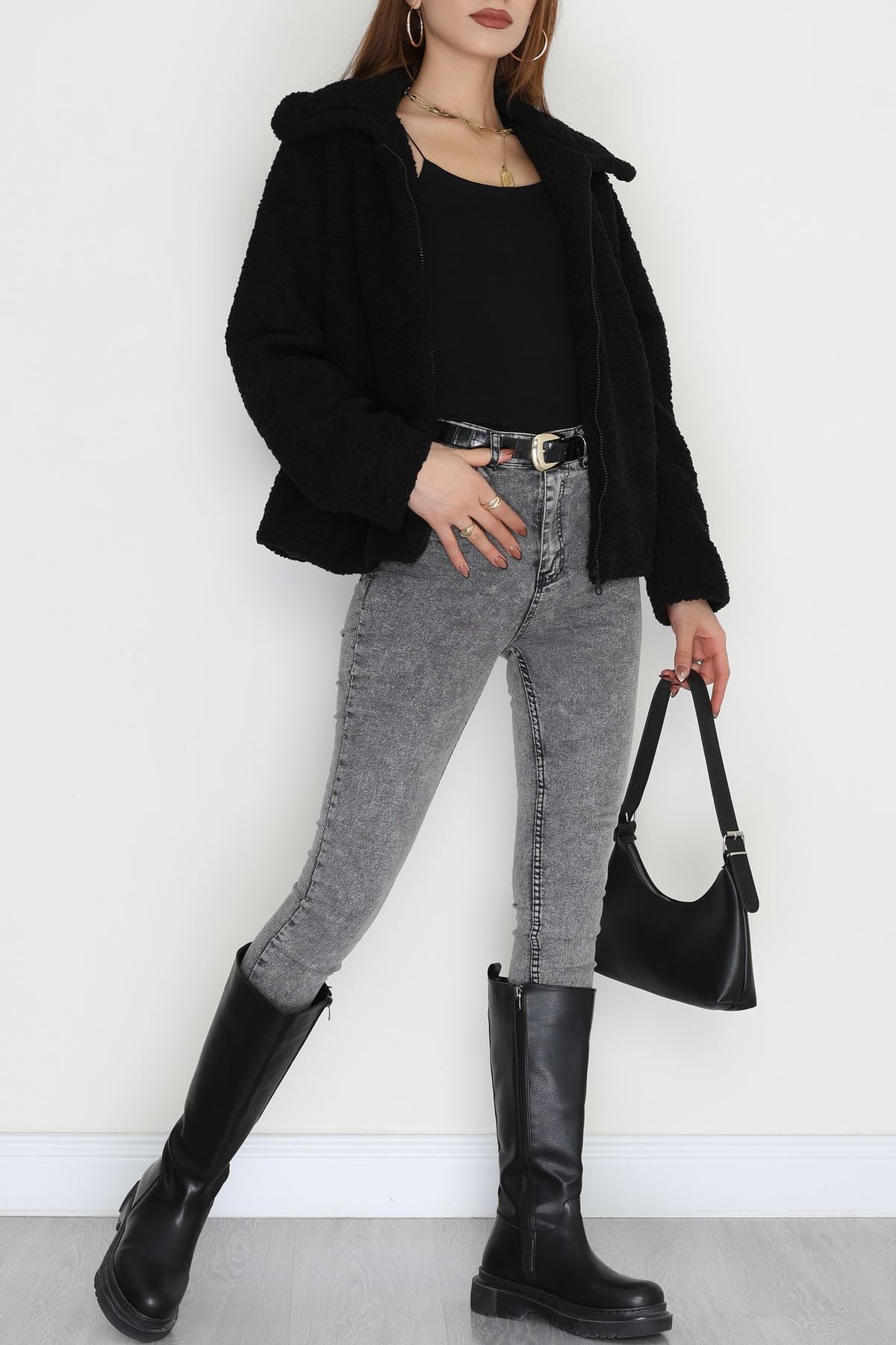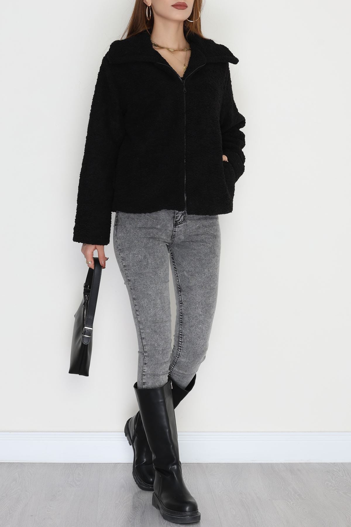 Yakalı Kuzu Mont Siyah - 42442.1247.