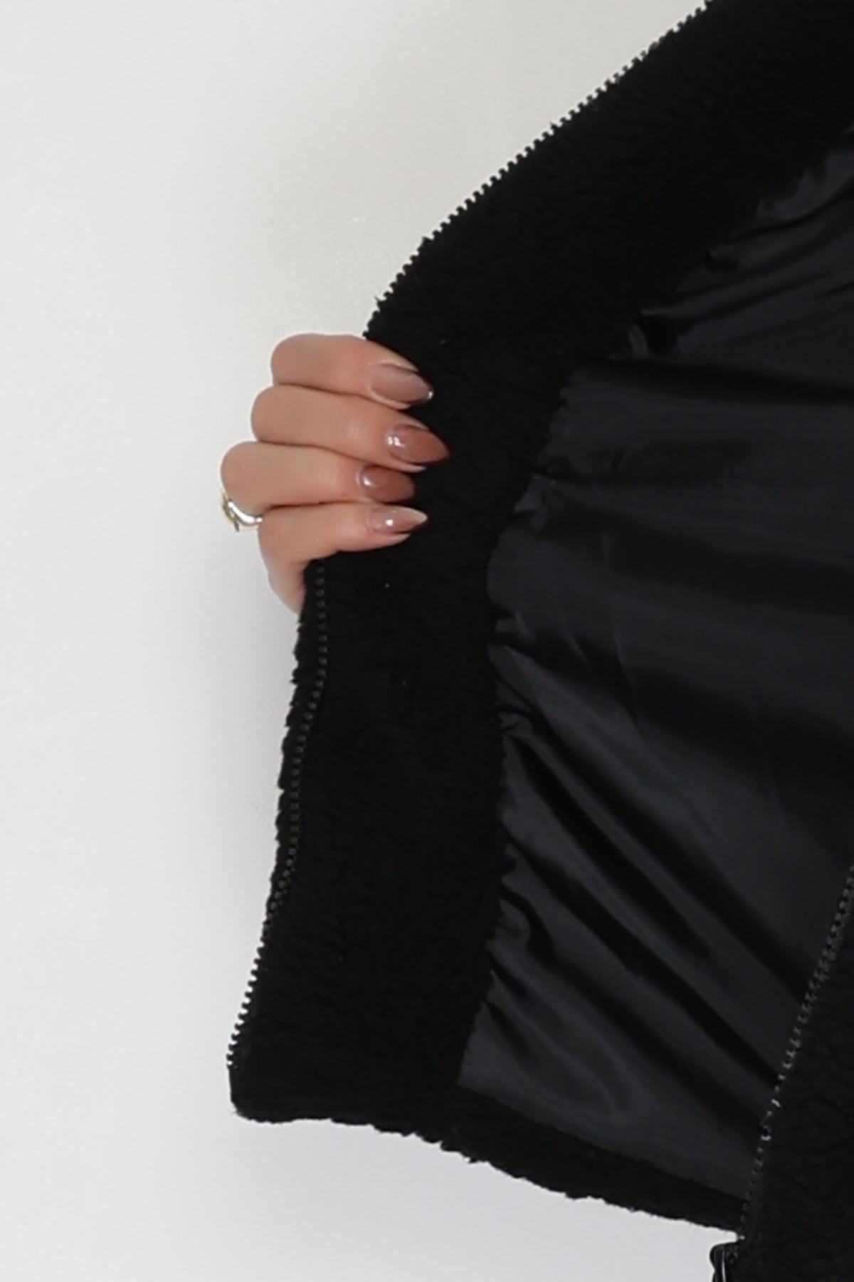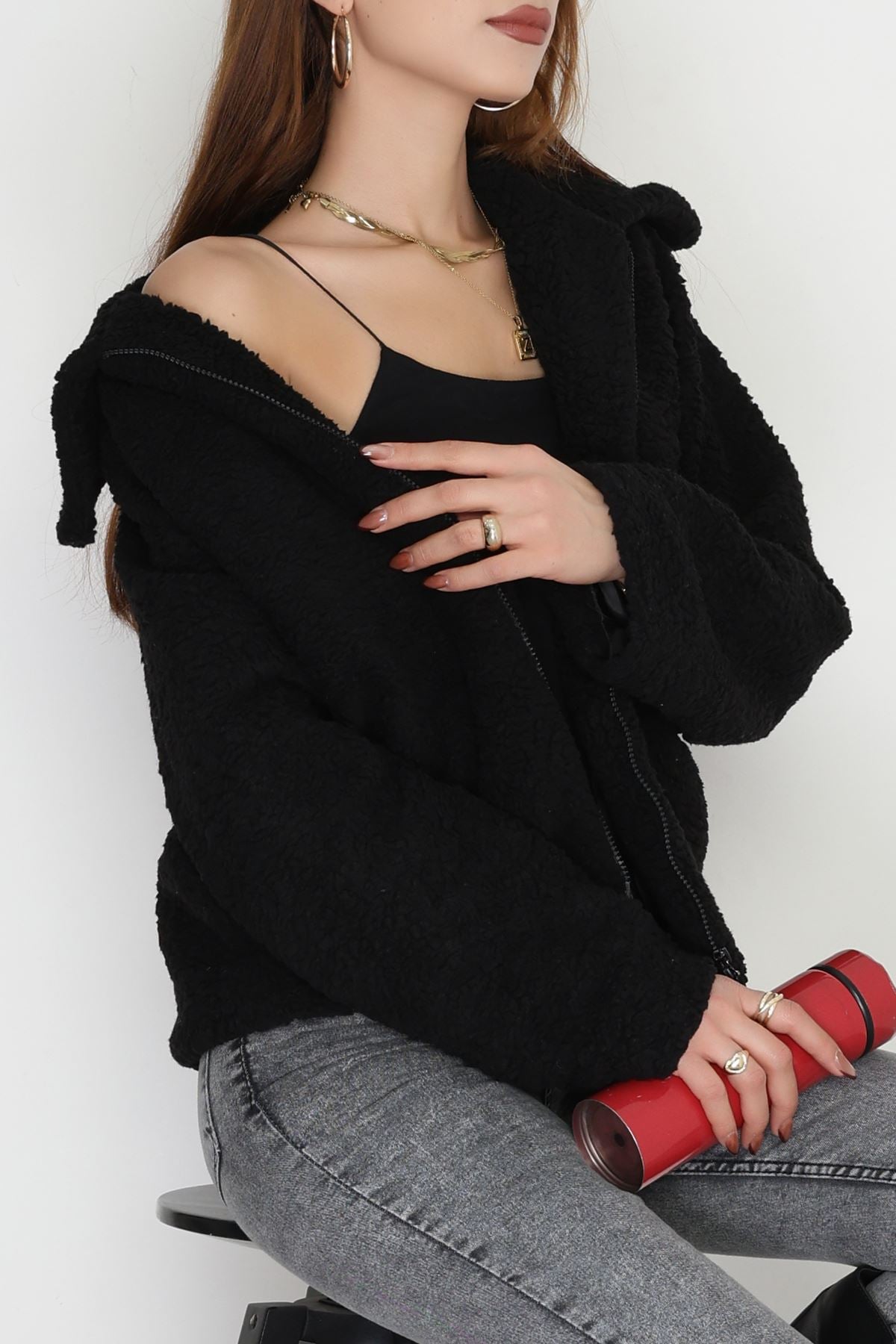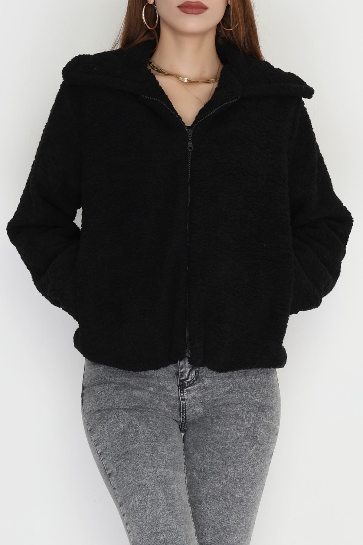 Yakalı Kuzu Mont Siyah - 42442.1247.
