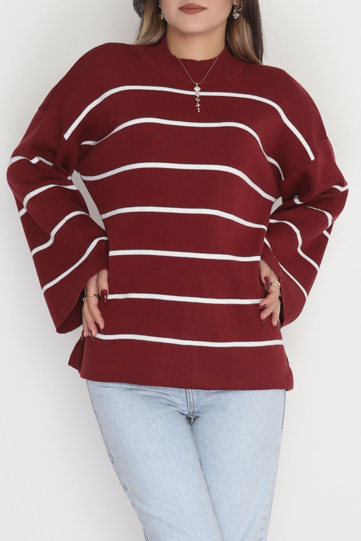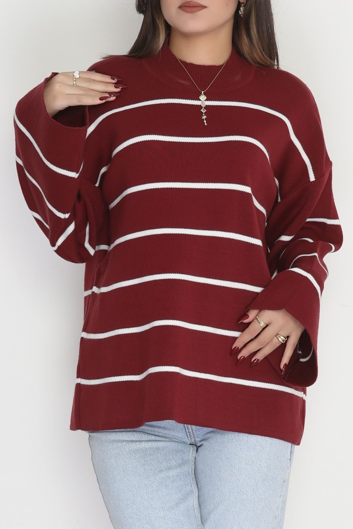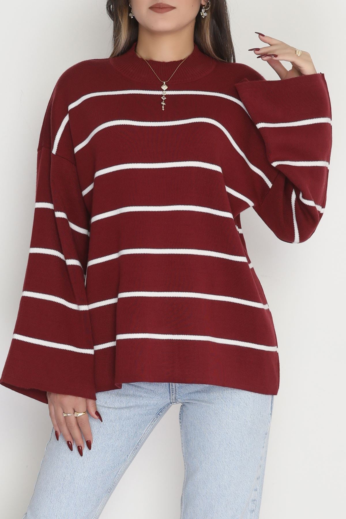 Yarım Balıkçı Yaka Triko Bluz Bordolatte - 3066.1577.