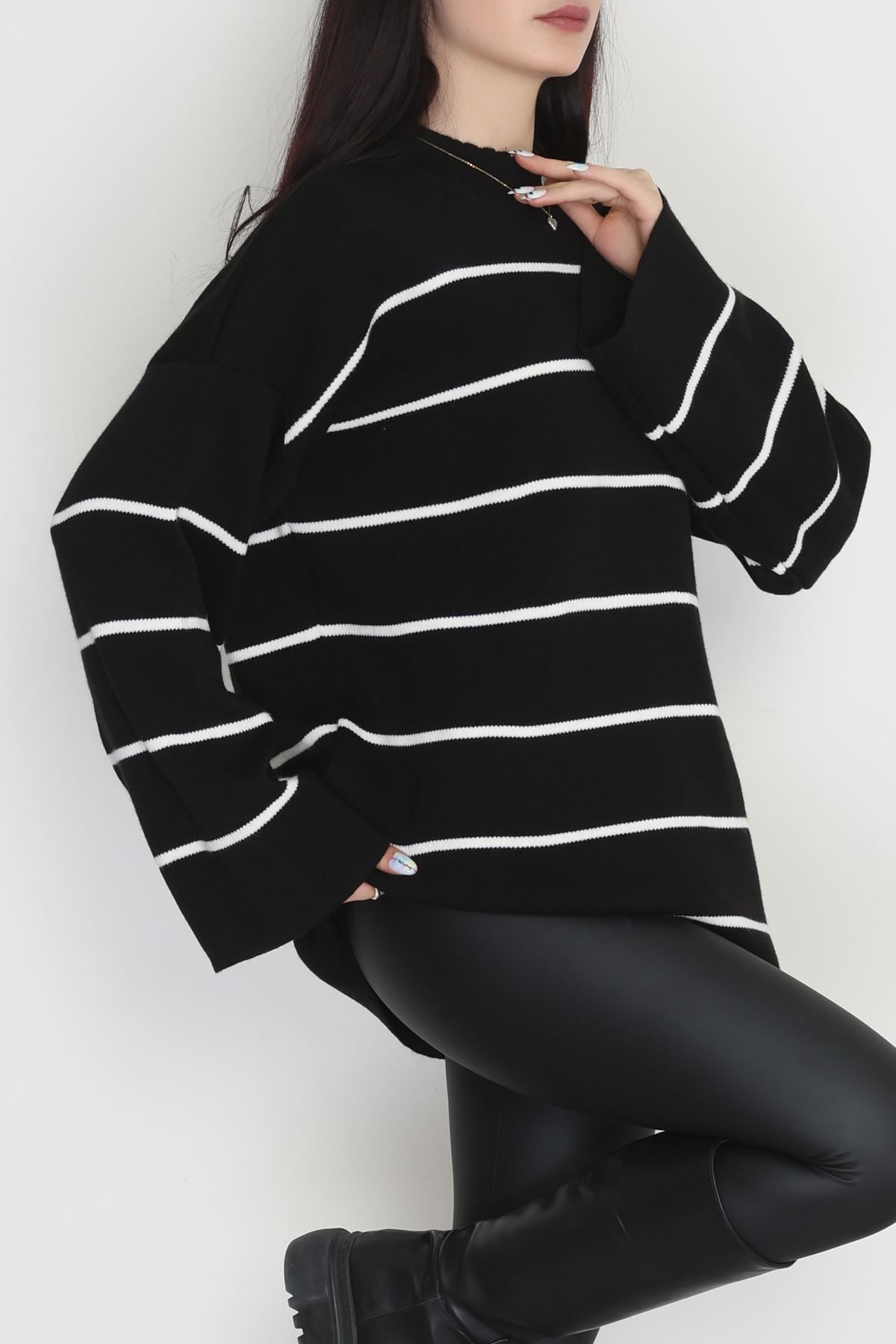 Yarım Balıkçı Yaka Triko Bluz Siyahlatte - 3066.1577.