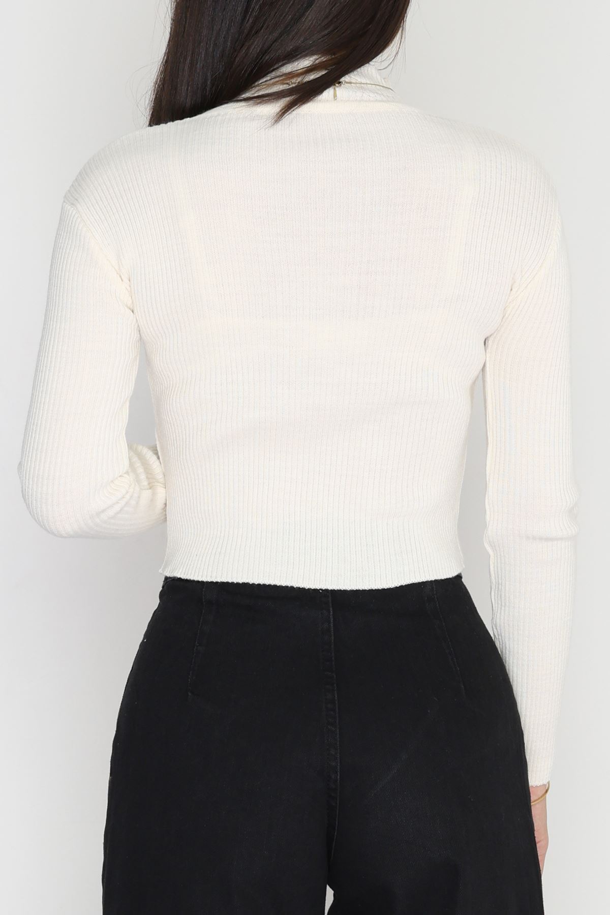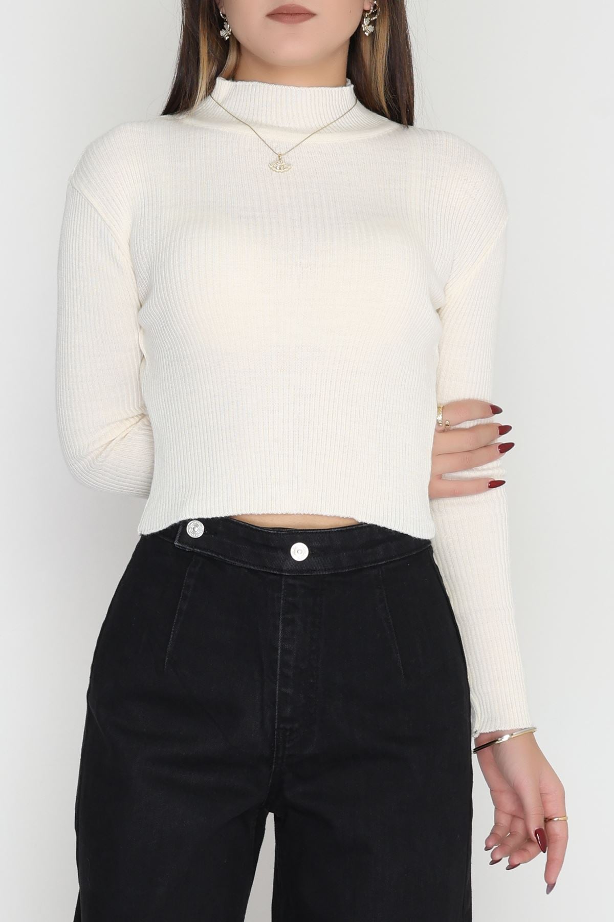 Yarım Balıkçı Yaka Triko Krem - 4049.2043.