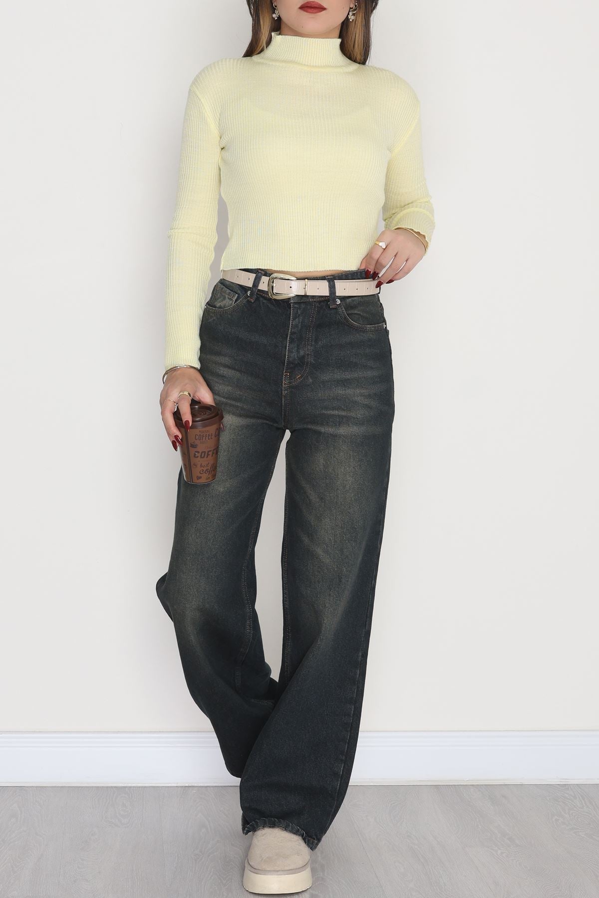 Yarım Balıkçı Yaka Triko Sarı - 4049.2043.