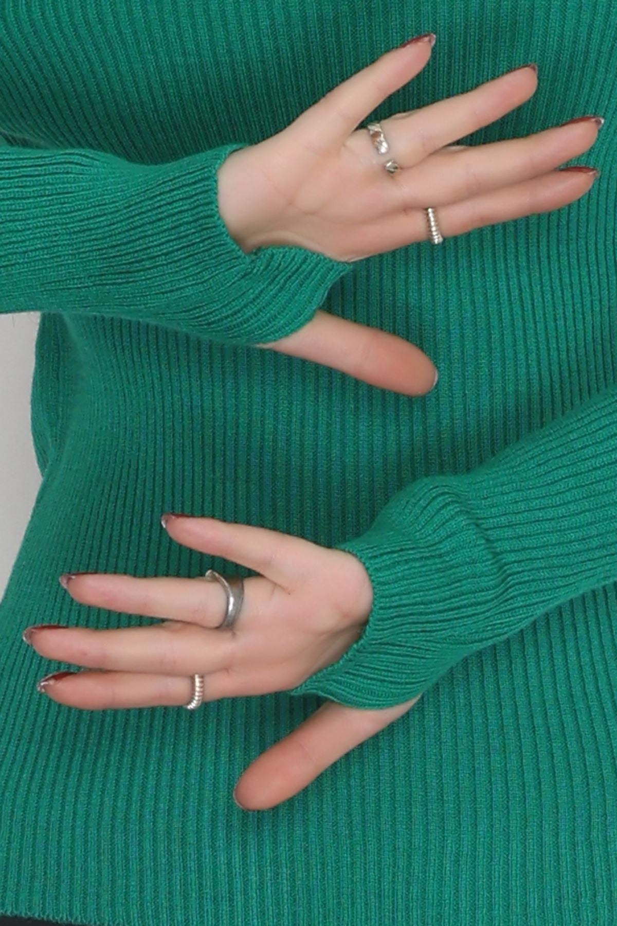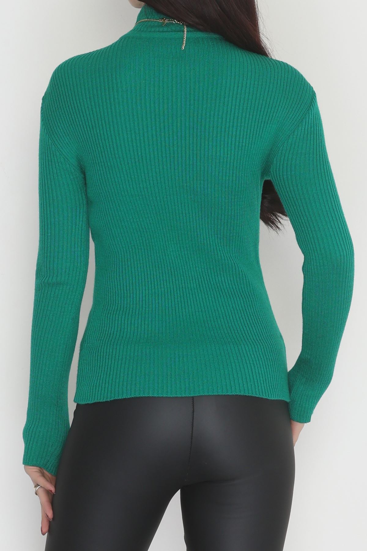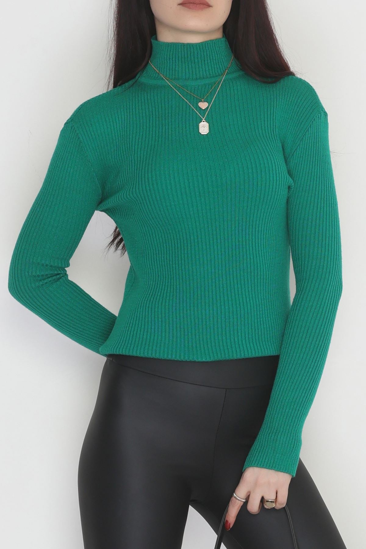 Yarım Balıkçı Parmak Geçmeli Triko Yeşil - 42030.2052.