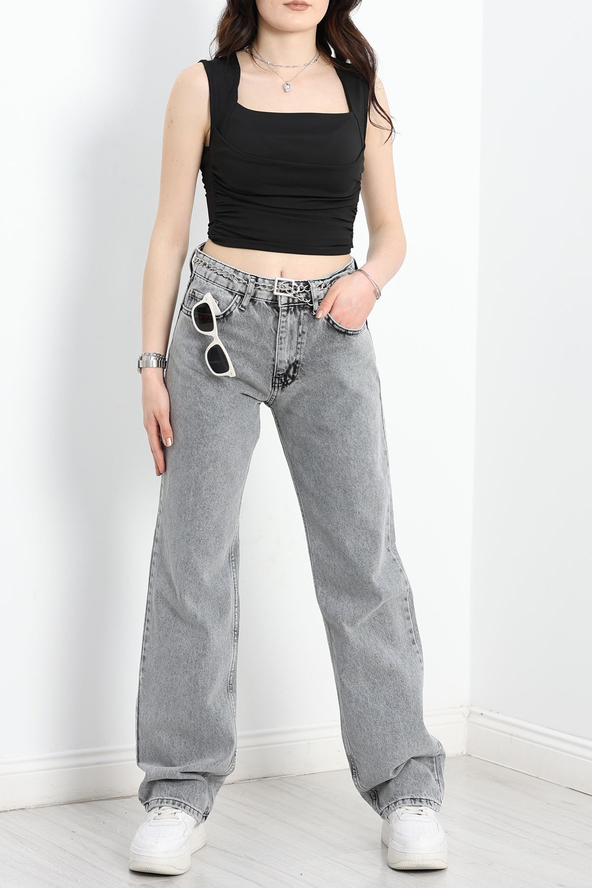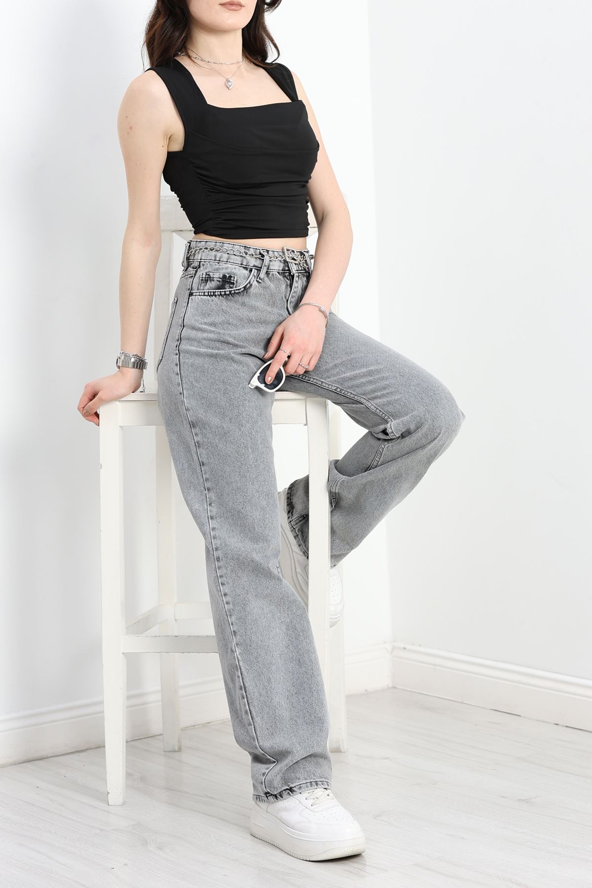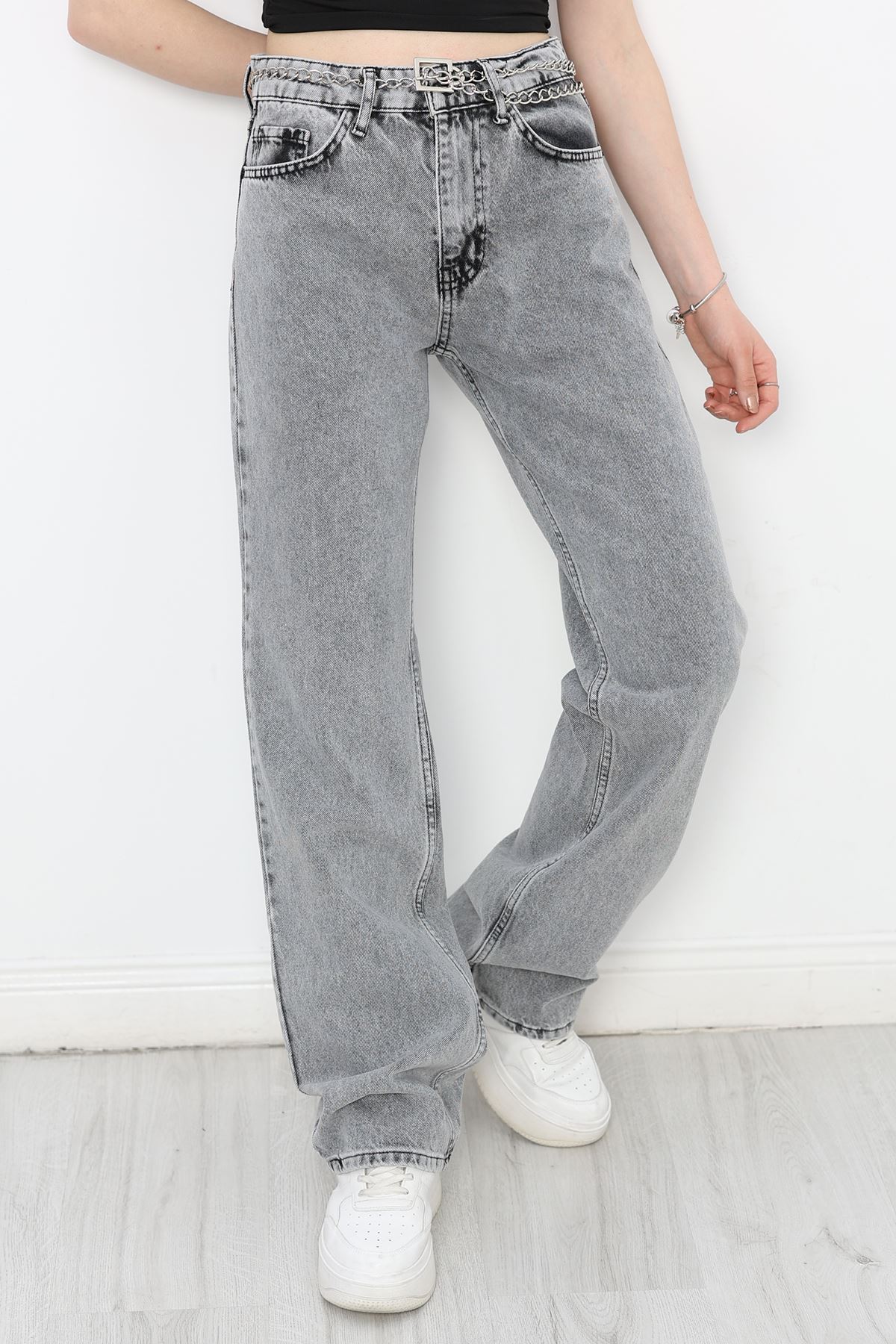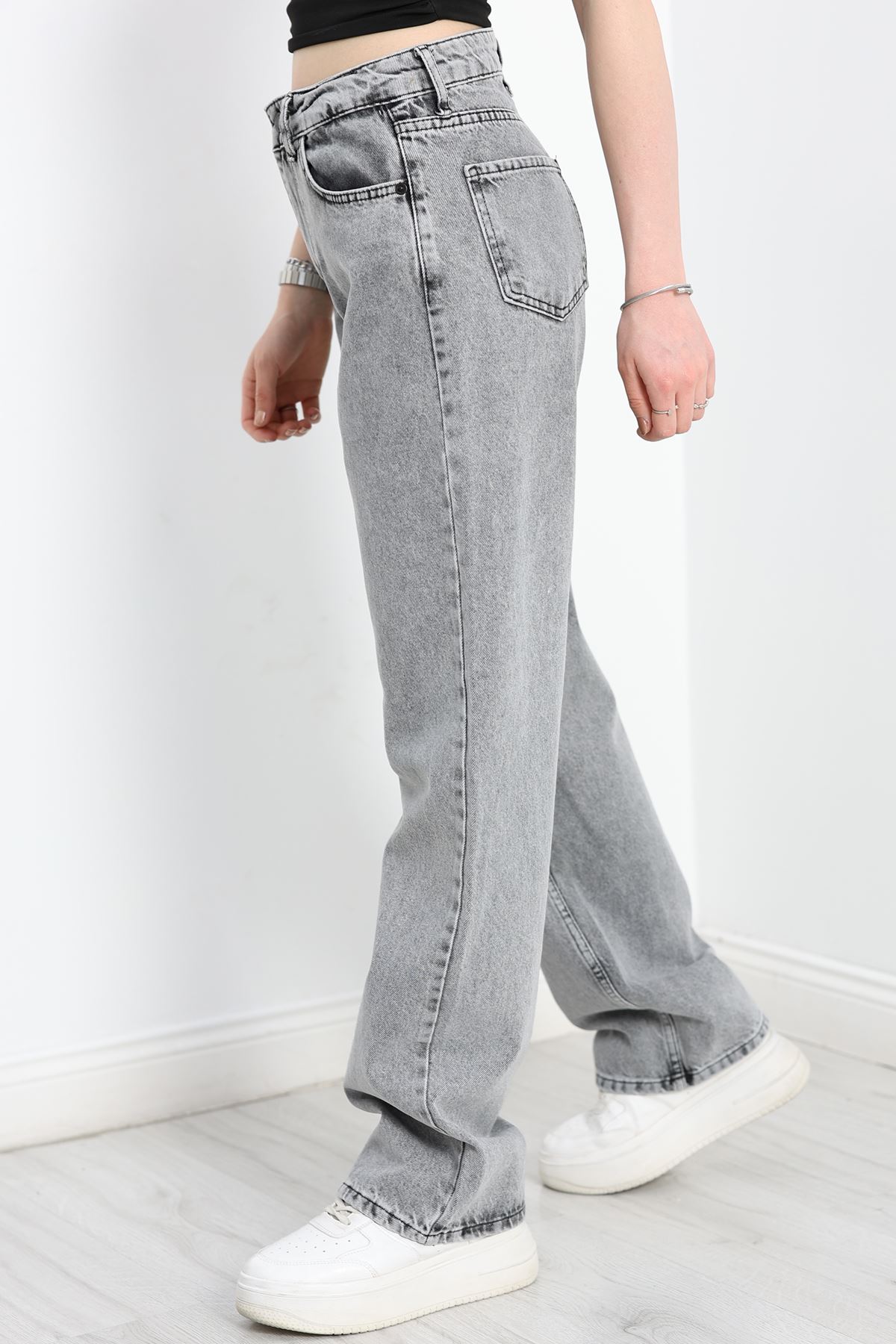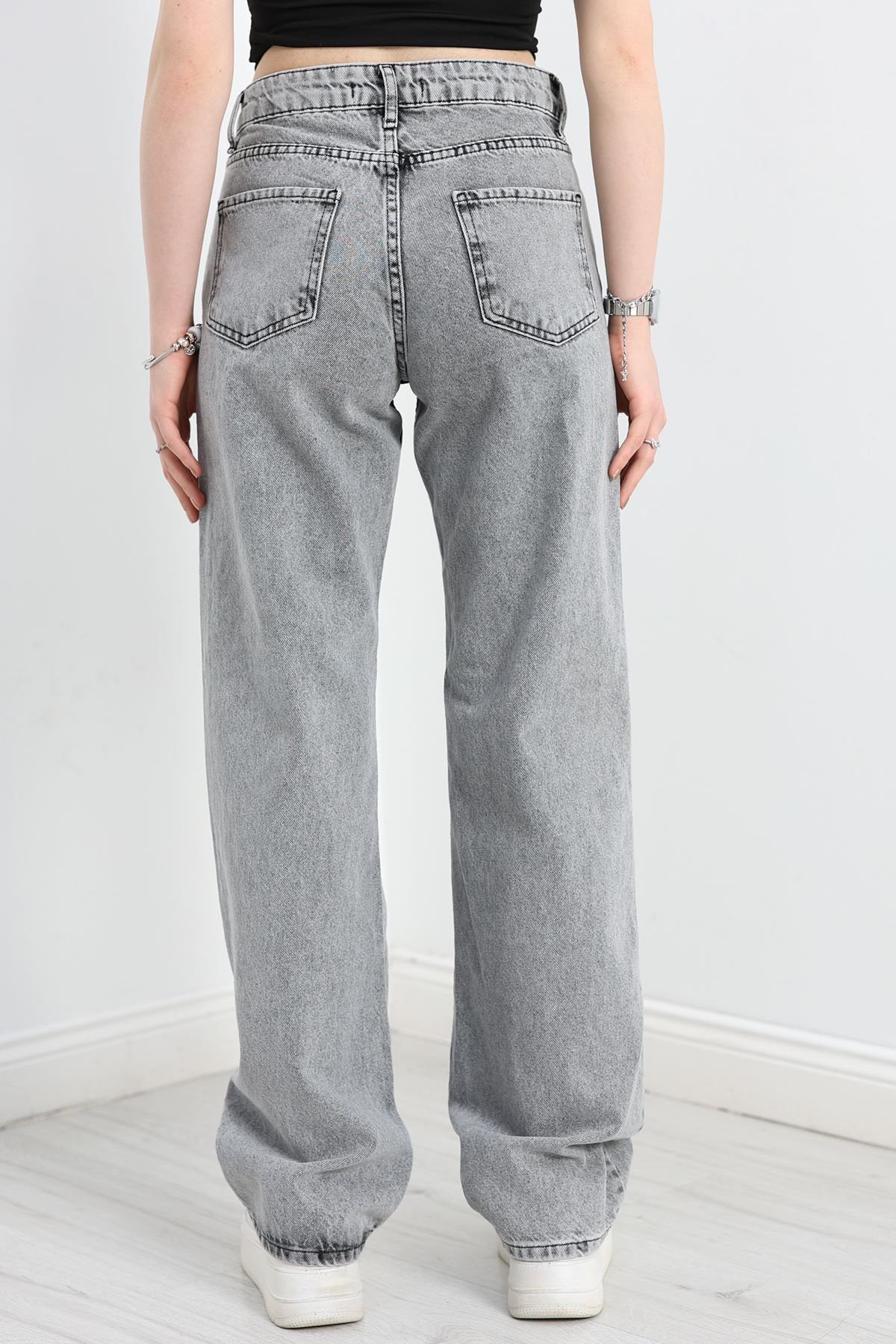 Yüksek Bel Straight Kesim Kot Pantolon Gri - 30541.1975.