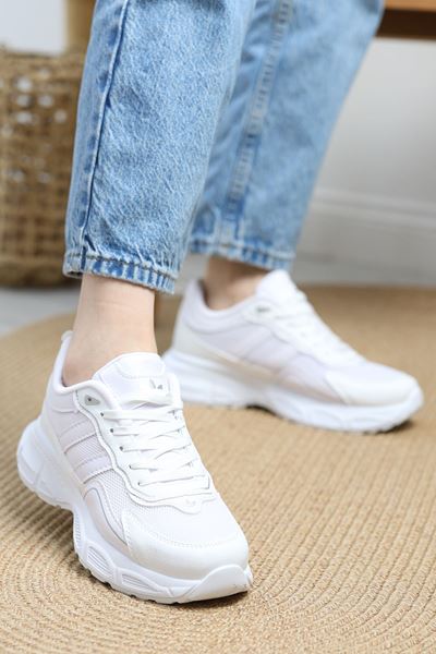 Yüksek Tabanlı Spor Ayakkabı. Şıklığı ve konforu bir araya getiren yüksek tabanlı spor ayakkabılarımızla tarzınızı tamamlayın. Hemen keşfedin! Yüksek Tabanlı Spor Ayakkabı, modern tasarımı ve rahatlığı ile öne çıkıyor. Günlük kullanım için ideal olan bu ayakkabılar, yüksek tabanı sayesinde hem şık bir görünüm sunar hem de gün boyu konfor sağlar. Beyaz rengi ve detaylı işçiliği ile her kombininize kolayca uyum sağlayacak. İster spor, ister casual kombinlerinizde rahatlıkla kullanabileceğiniz bu ayakkabılar, gardırobunuzun vazgeçilmezi olacak.